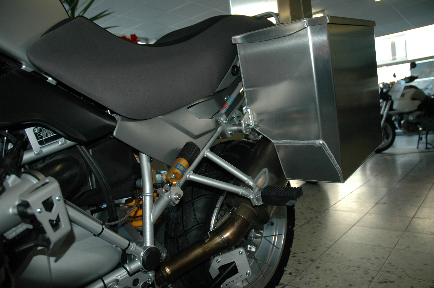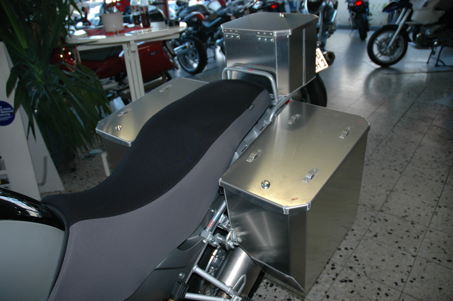 Für mich sind die org. BMW Alukisten das beste, praktischte u. robusteste Koffersystem f. d. ADV ! Das die Dinger nicht eloxiert sind ist trotzdem bedauerlich, allerdings wäre mir das Geld f. eloxierte TT-Koffer samt Träger zu schade. Innentaschen kosten weniger, sind praktisch u. zur Not tun's auch Tüten aus dem schwedischem Möbelhaus. Weitere Vorteile: sehr stabil, Toploader, sehr gut ins Motorrad integriert, schützt beim Sturz den Heckrahmen (Soziusfussrasten), Gleichschliessung u. Platz ohne Ende. Ich nehme sie trotzdem nur wenn's mit meiner Sozia in den Urlaub geht denn die GS wird breit (natürlich sind die breiter als d. Lenker), schwer u. f. mich alleine auch auf einer 3 Wochentour mit Zelt zu groß, da ich Tankrucksack f. Kamera etc. u. Alutopcase zum Abschliessen (Notebook etc.) dranhabe. D. Klamotten verstaue ich in Packtaschen ! Die GS ist dann zwar v. hinten betrachtet nicht mehr symetrisch, aber die Auspuffseite ist trotzdem nicht breiter als d. Lenker. Kosten ein Drittel d. Koffer, wasserdicht, die GS fällt weich, lässt sich unterwegs leicht reparieren u. d. Fahrspass bleibt erhalten ! Hitzeschutz muss man natürlich basteln aber das ist auch mit zwei linken Händen kein Problem.