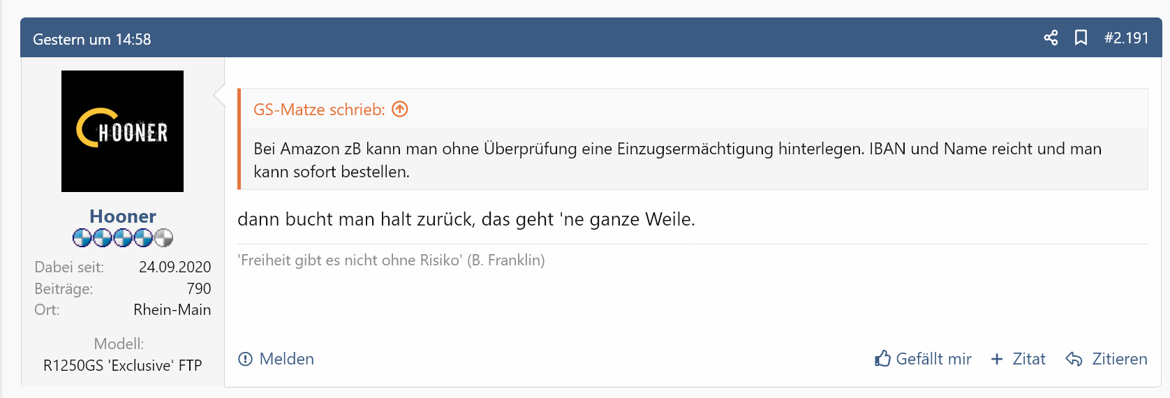Da amazon aber IMO kein Lastschrifmandat hat, welches signiert ist (das muss auch bei meiner Bank hinterlegt werden) kann man da auch nach den 8 Wochen zurückbuchen, wen da was schiefgeht weil meine IBAN missbraucht würde.