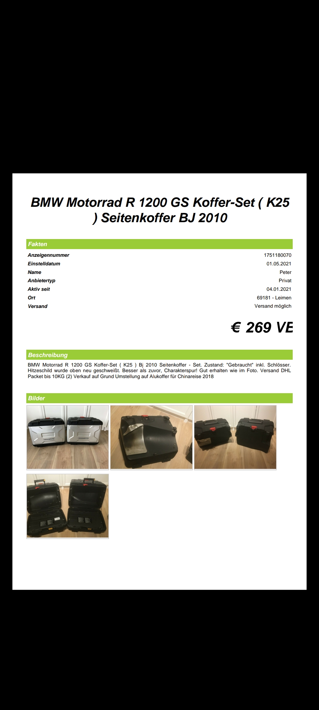 Motorradunabhängig und auch wenn du das nicht hören willst, eBay und eBay Kleinanzeigen sind und waren schon immer der absolute Keim von Betrug. Günstige Sachen bei Kleinanzeigen oder sonst wo sind absolut immer mit Vorsicht zu genießen. Auch wenn du keine Ahnung von den Preisen hast, vergleicht man doch mal andere Angebote und dann muss es einem doch schon komisch vorkommen...selbst wenn ich das jetzt dort suche ist das günstigste Set ohne Topcase bei 379 Euro...