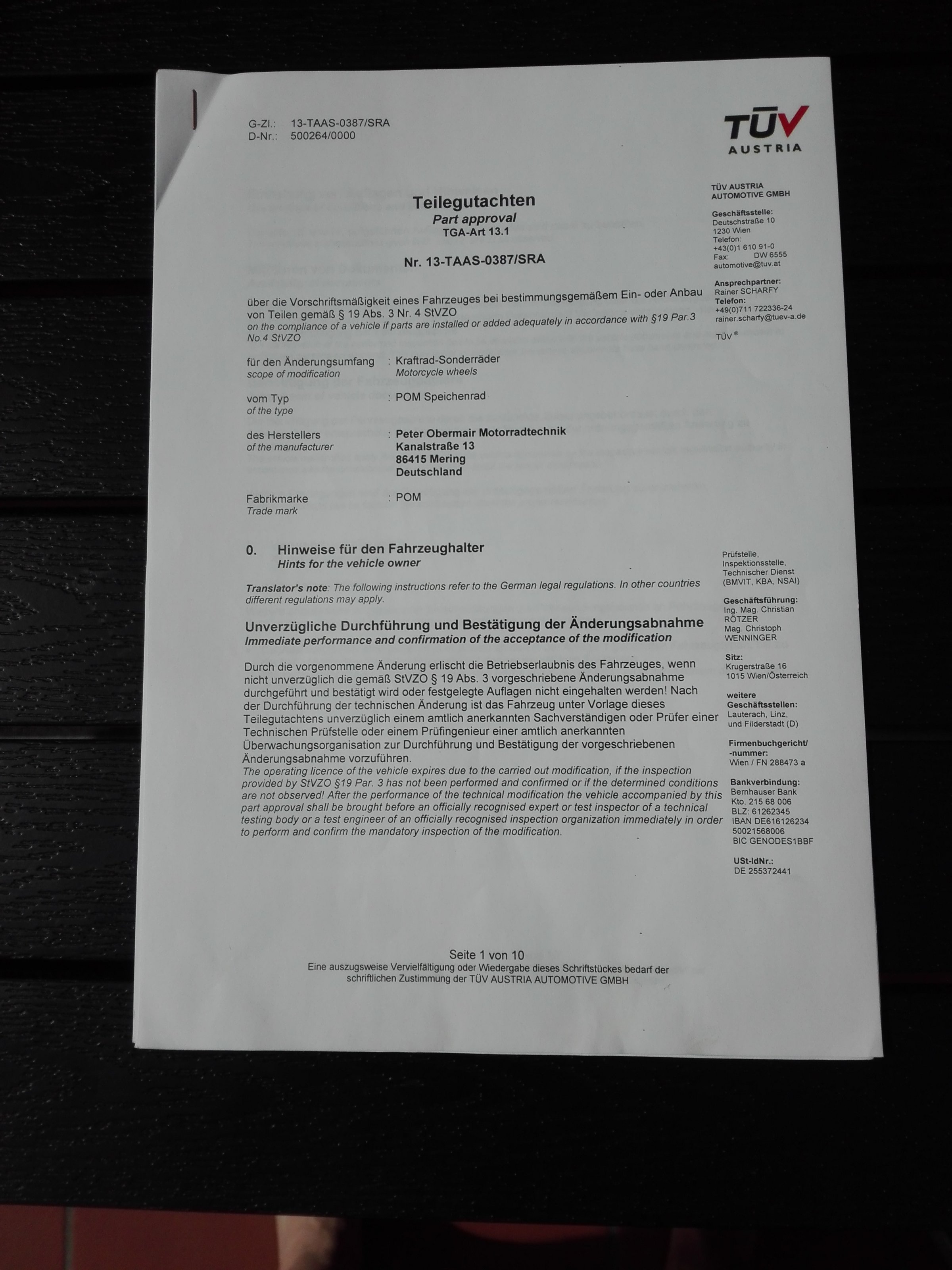 Gutachten vom TÜV Austria ist dabei womit man die Felgen problemlos beim deutschen TÜV eingetragen bekommt.