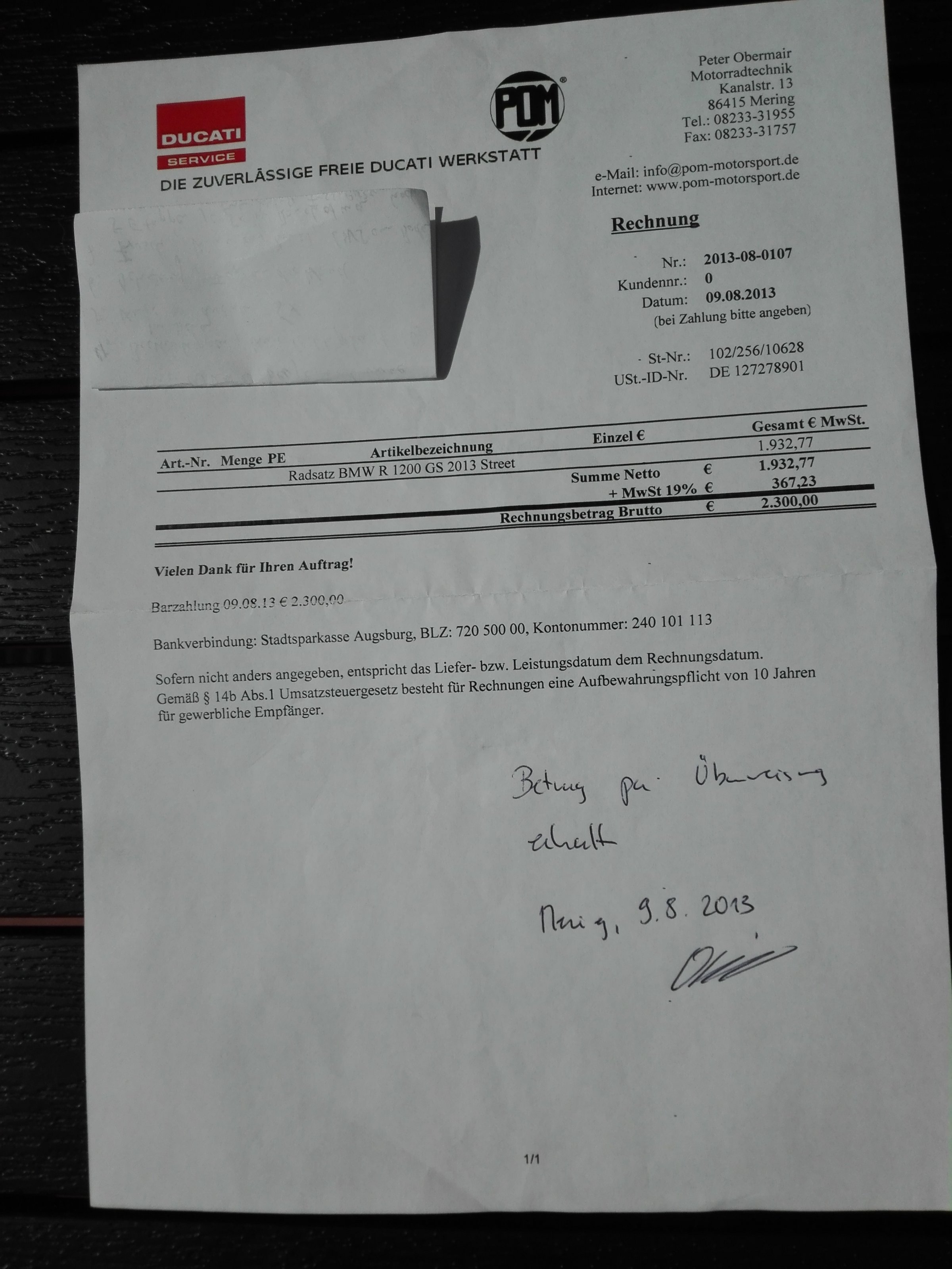 verkaufe 2 17 Zoll Speichenfelgen von POM (Peter Obermair Motorsport) passend für GS1200/1250 alle Wasserboxer ab Bj.2013