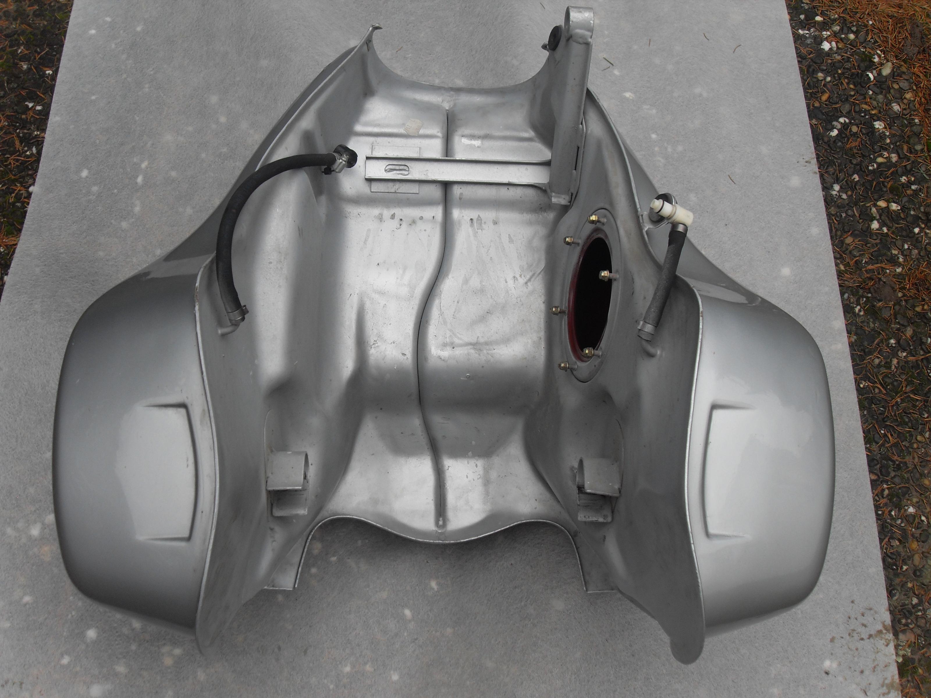 An dem 30 Liter Tank wurde vor vielen Jahren schon mal an eine Delle repariert (da wo der Kreis auf dem letzten Foto ist). Der Tank wurde anschließend neu lackiert. An der reparierten Stelle ist der Lack auch nach den vielen Jahren nicht gerissen. Wenn man gaaanz genau hinsieht, dann sieht man, dass die Rundung nicht perfekt ist. Der Tank ist rostfrei. Er wird ohne Kraftstoffpumpe und ohne Tankdeckel geliefert. Ich empfehle Besichtigung vor Ort. Artikelstandort ist Mainz.
