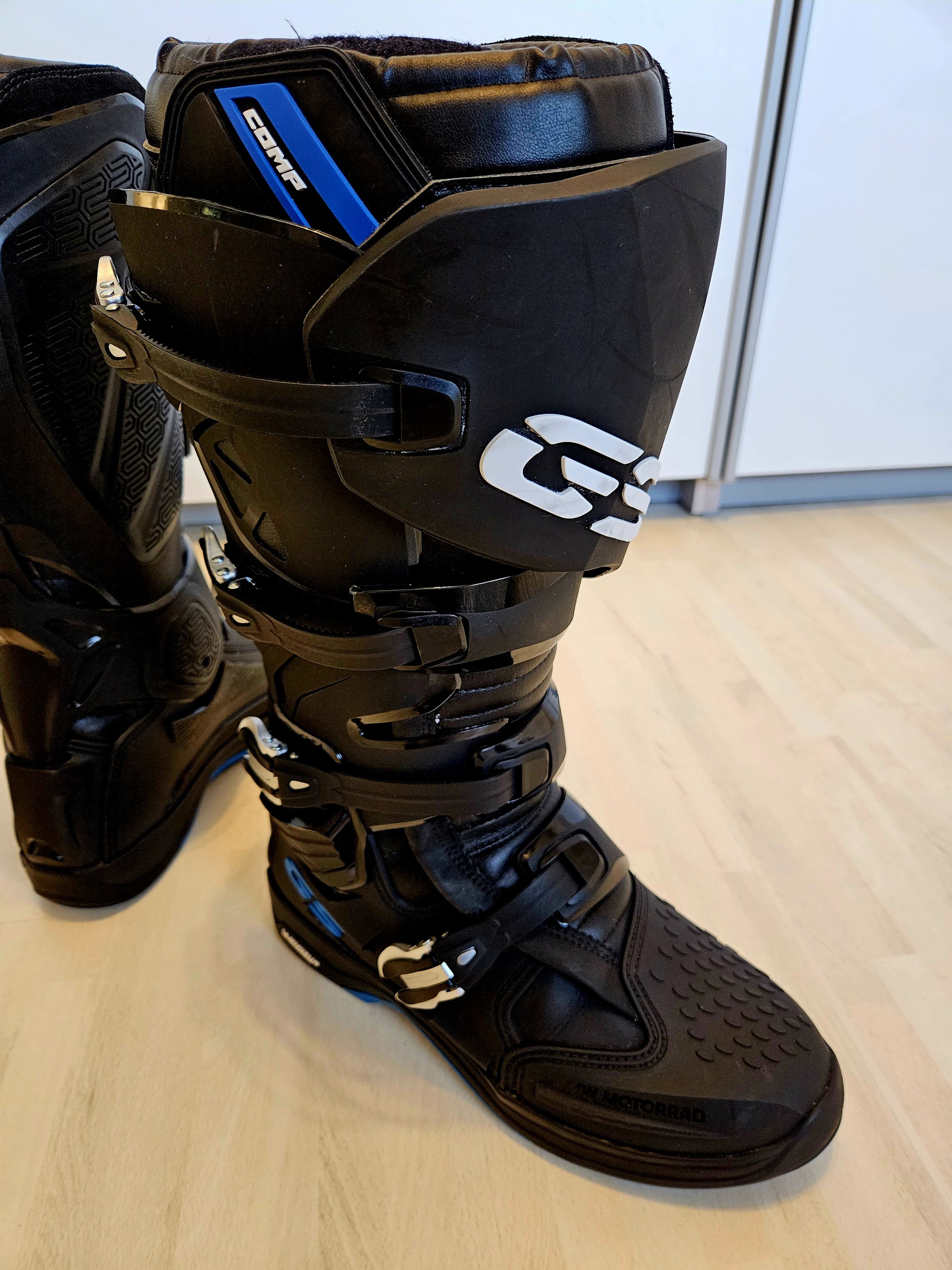 Ich biete heute ein super bequemes Paar BMW GS Competition Stiefel in der Größe 46. Die Stiefel fallen deutlich kleiner aus. Ich trage Schuhgröße 43/44 (US 10) und sie passen perfekt. Die Stiefel haben nie Gelände gesehen. Zum Rumstehen sind sie einfach zu schade. Die Stiefel sind in einem sehr gepflegten Zustand und wurden nur ca. 5000 km Motorradkilometer getragen.