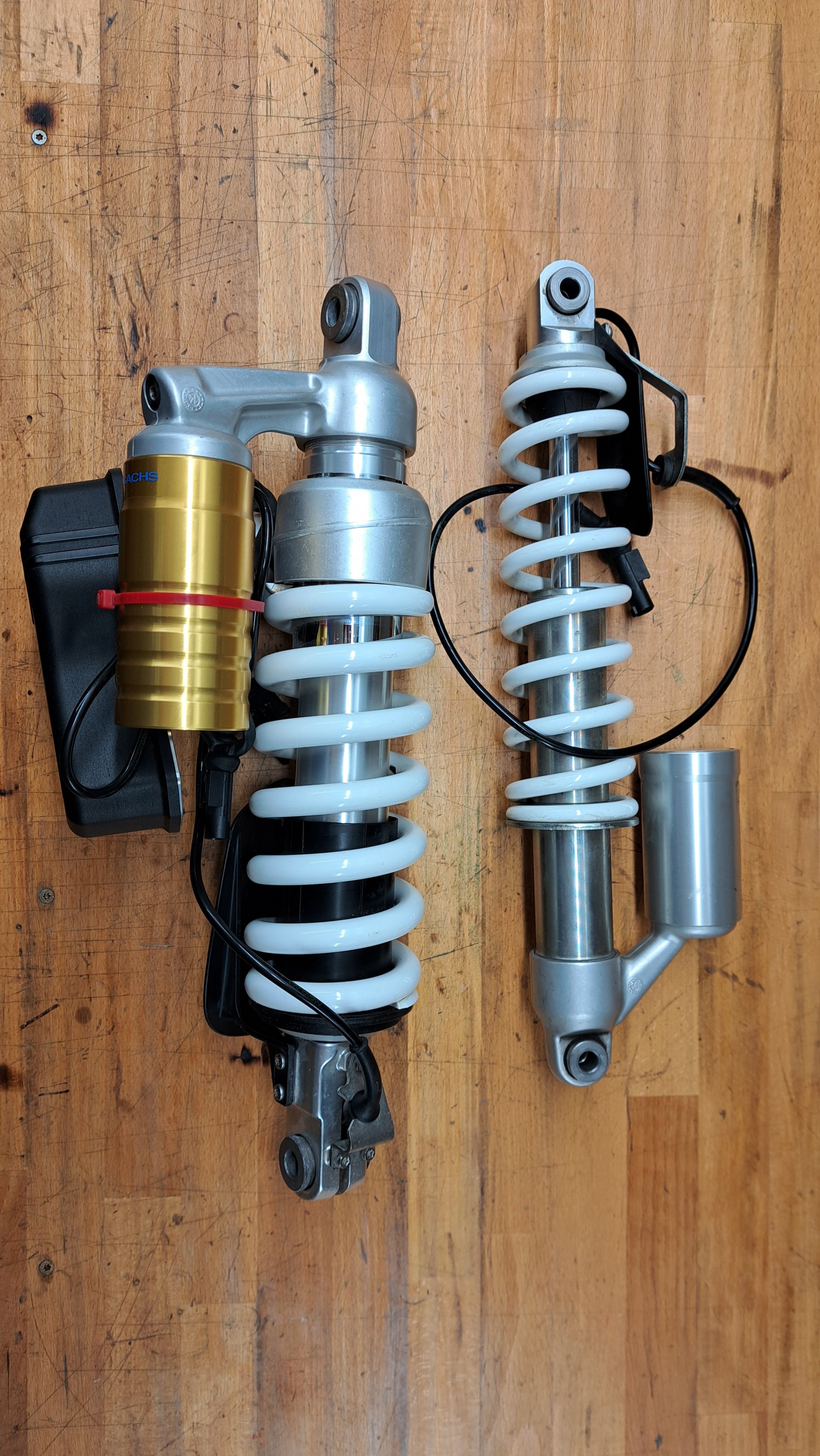 ich habe das ausgebaute ESA Fahrwerk meiner 2014er GS auf Lager liegen. Das vordere Federbein ist überholungsbedürftig, es wurde undicht. Das Hintere hat seinen Job bis zur Umrüstung auf TT sauber erledigt.