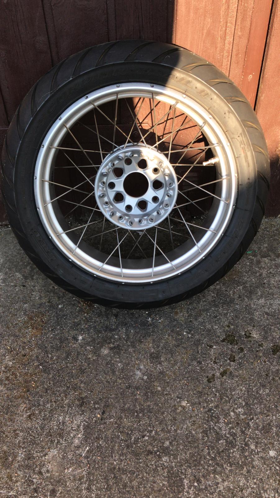 Hallo ich biete hier ein gebrauchtes Hinterrad mit Speichen für R1250 GS mit Pirelli Skorpion Trial 2