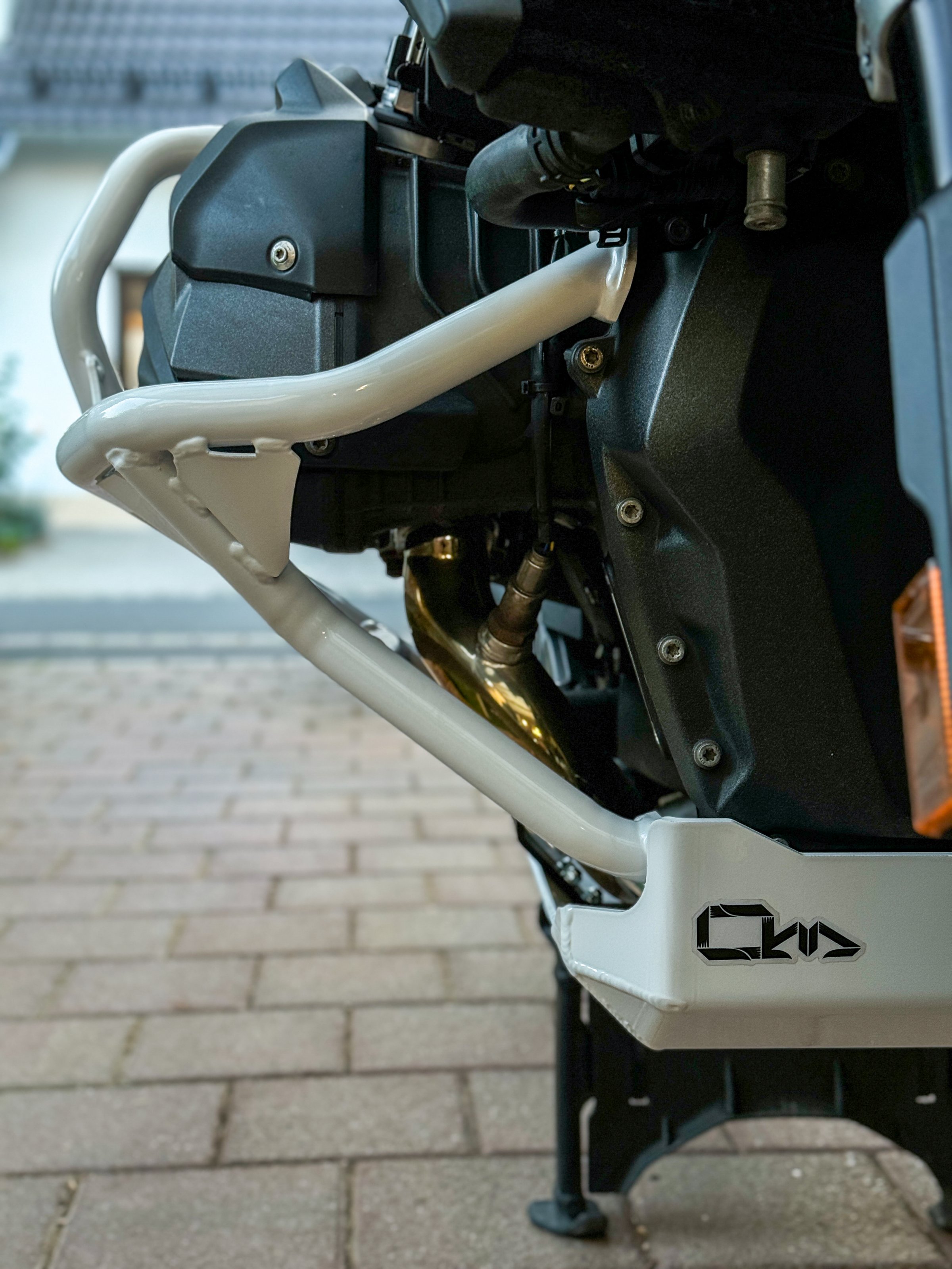 Ich biete ein paar (links und rechts) Sturz-/Motorschutzbügel von Outback Motortek in weiß.