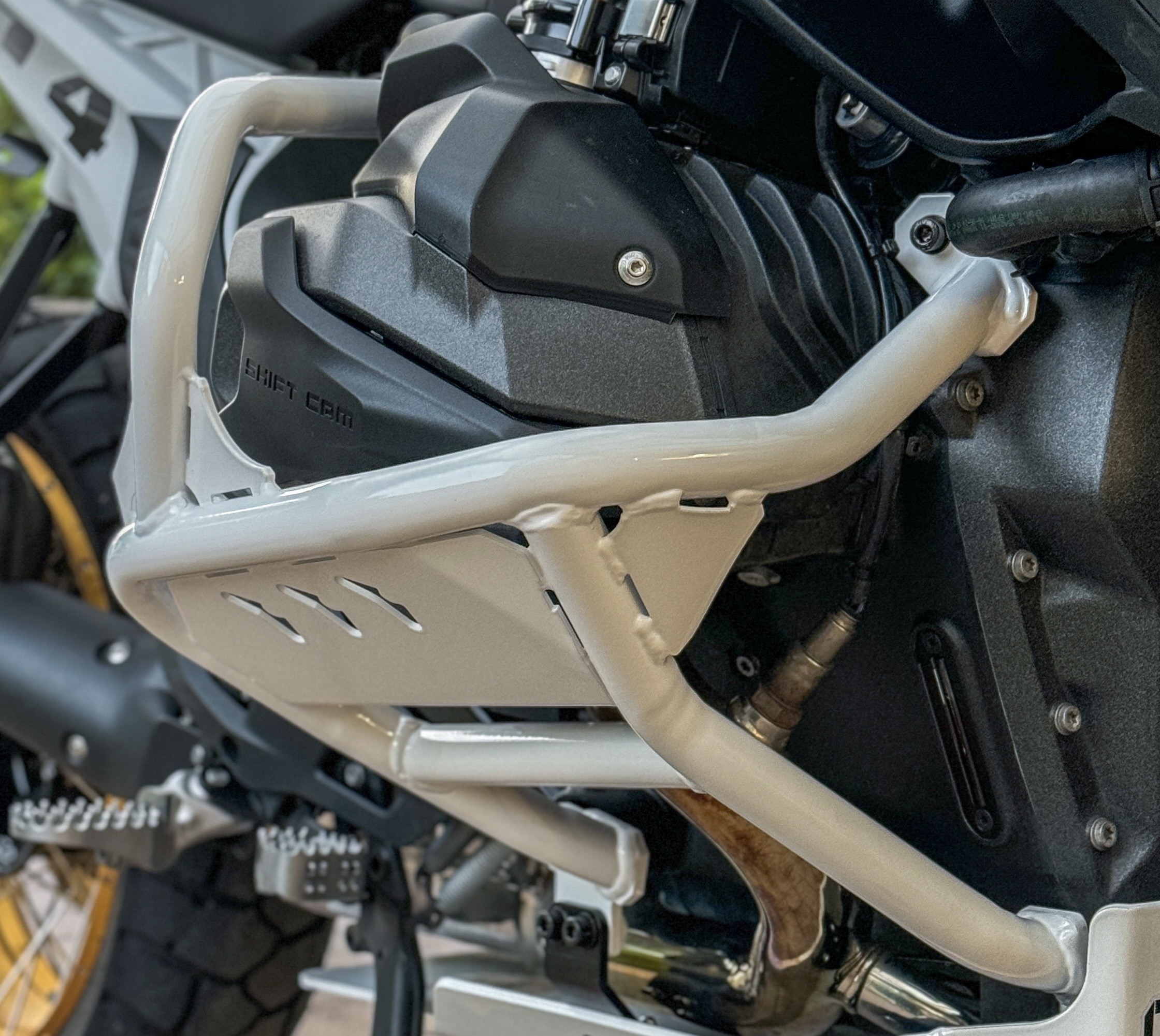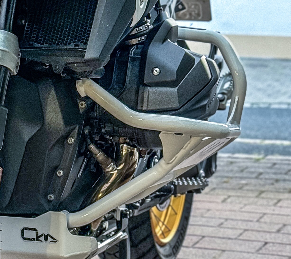 Auf Herz und Nieren geprüfter Schutz für die BMW R 1300 GS/GSA. Diese Sturzbügel wurden extremen Bedingungen ausgesetzt, um einen angemessenen Schutz für die freiliegenden Zylinderkopfhauben zu finden.