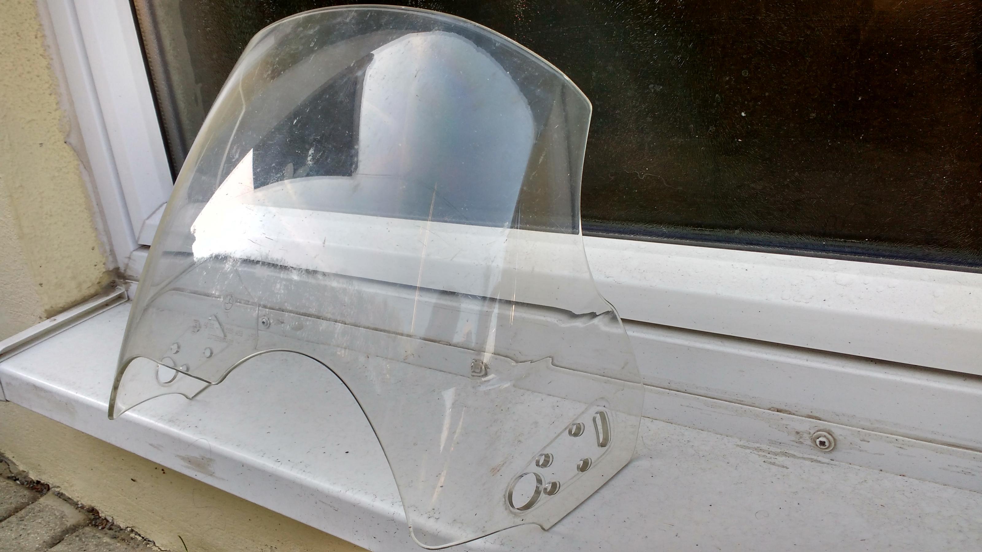 Des Weiteren biete ich noch eine Windschutzscheibe klein für die GS. Sie hat schon einige Touren gesehen und dementsprechende Geprauchsspuren. Ist soweit aber noch okay.