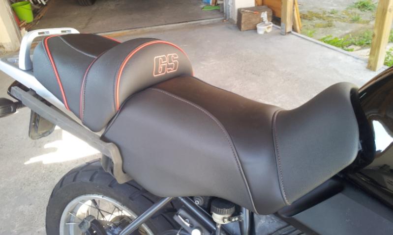 Die Bank wurde 2012 neu (leicht erhöht) gepolstert. Die Nähte und Keder sind rot und auf der hinteren Bank ist ein "GS" eingestickt.
