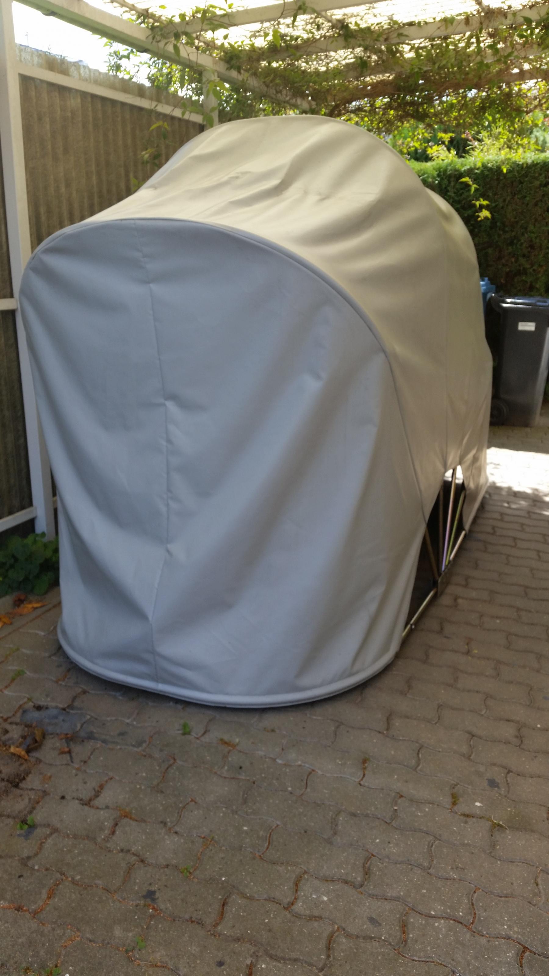 würde gerne meine BIKEHOME Motorradabdeckung verkaufen - der Vorteil gegenüber einer Abdeckplane ist das man sich nicht vorsehen muß mit z.B. heißen Auspuffteilen.