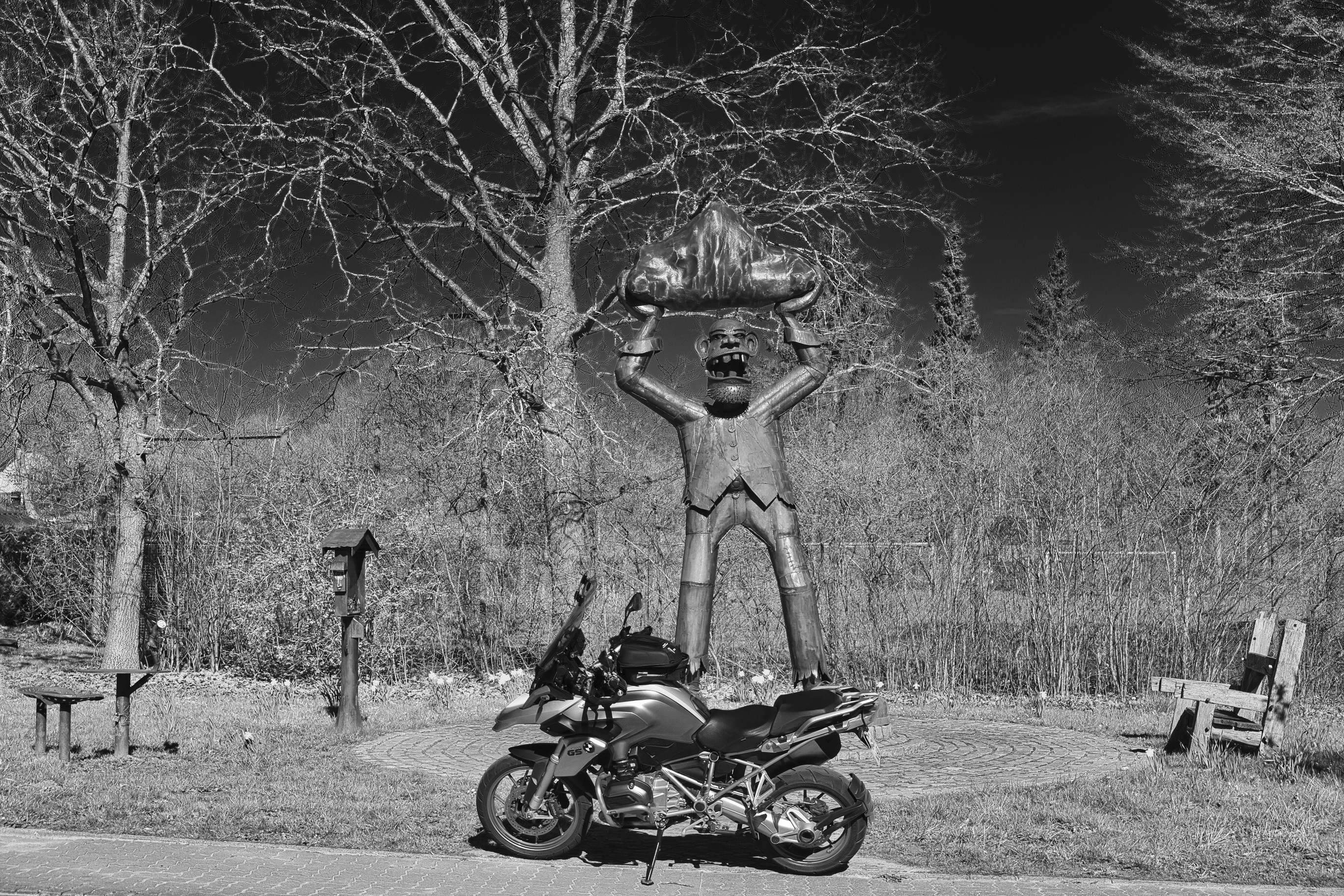 Leider nein. Eine Schlei-Runde beinhaltet eigentlich immer die Fahrt durch "Ulsnis". Direkt an der Durchgangsstraße liegt dieses Kunstobjekt mit großer Bank (rechts im Bild).Du warst bei Andy ?