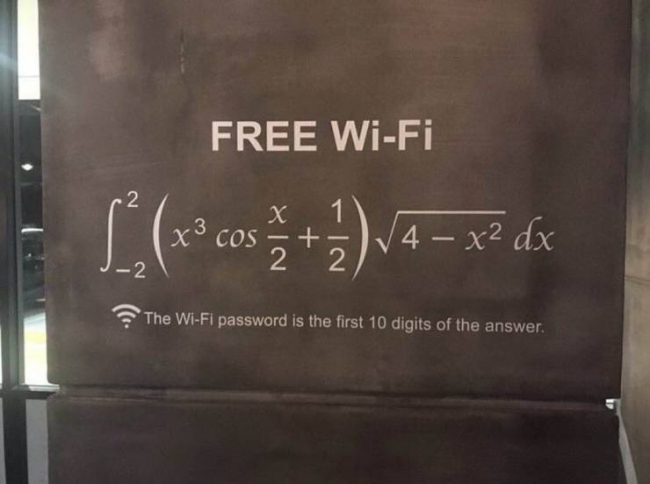 Die korrekte Antwort lautet übrigens "pi", also 3.141592653. Kann man sogar im Kopf lösen, weil der erste Summand (mit symmetrischen Grenzen) zusammen mit der Wurzel ungerade ist - also keinen Anteil fürs Integral liefert - und der zweite nichts anderes als der Flächeninhalt eines Viertelkreises mit Radius 2. Ist vielleicht gar kein Witz, sondern ein Zugangscode für Mathematiker ...