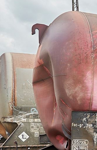 Bei genauem Hinsehen sieht man, dass das wie ein Schweinehintern aussiehtBei genauem Hinsehen sieht man, dass der Kesselwagen gerissen ist.