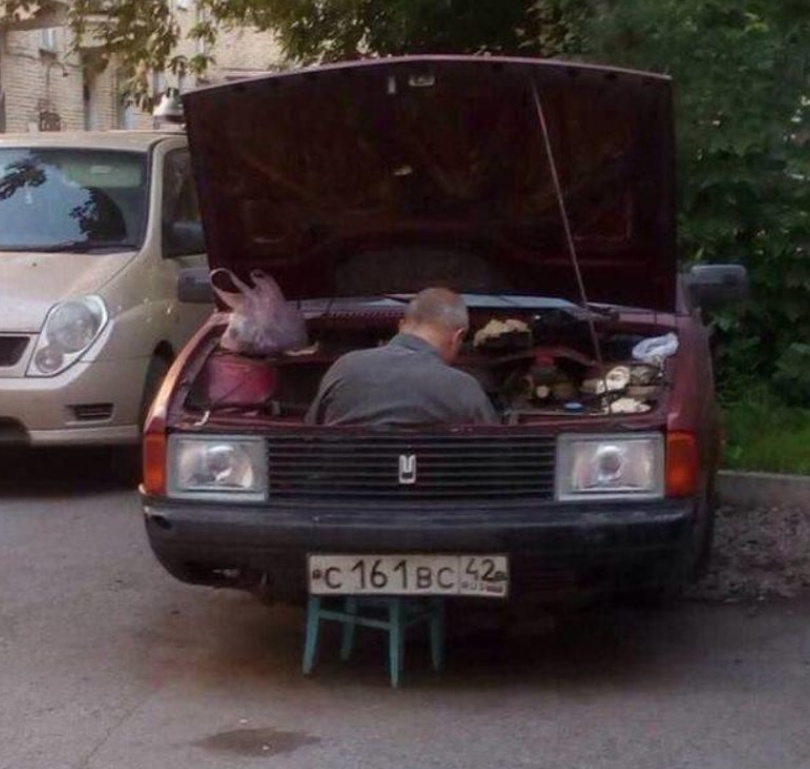 Nach einer halben Stunde muss der Porschefahrer tanken und fährt in die nächste Tankstelleneinfahrt. Zu seinem erstaunen sieht er dort den Trabbifahrer mit einem Eimer Wasser in der Hand, macht die Motorhaube auf und kippt den Eimer Wasser rein. Der Porschefahrer fährt verwundert an die Zapfsäule und tankt für 150Euro Super.