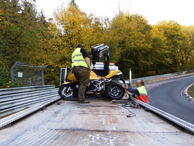 Nordschleife zusammen mit Motorwagen ist einfach zu gefährlich, weil die Scheißkisten immer irgendwelche Betriebsmittel verlieren.