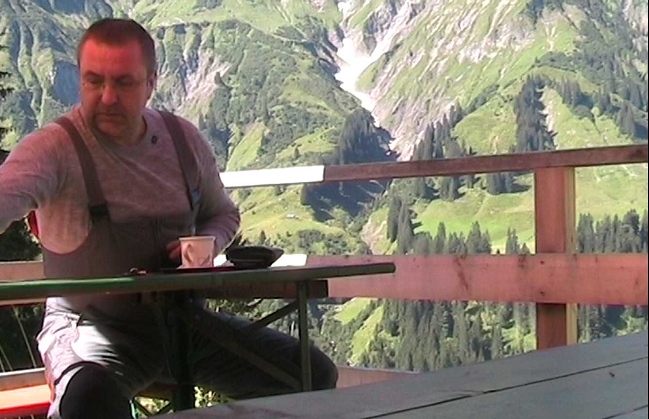 ...nun, es war ein herrlicher Sommermorgen der mich aus dem bayrischen Voralpenland in den Schwarzwald begleiten sollte. Spontan entschloß ich mich zu einem kleinen Schlenker nach Österreich und in die Schweiz. Vorbei am Ammergebirge, über "den Pass" und dann weiter, südlich des Bodensee´s zum Ziel. Auf diesem Weg kam mir die Kaffeepause am Kiosk gerade recht.