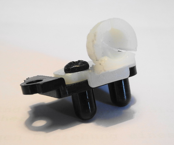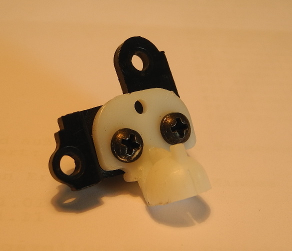 Vor dem Einbau des SW am Moppi, am besten vor oben beschriebener "Operation", kontrollieren, dass die Halbkugel oben rechts (für die links/rechts-Justierung des SW) eingerastet ist, was tatsächlich recht einfach von Hand zu bewerkstelligen ist.