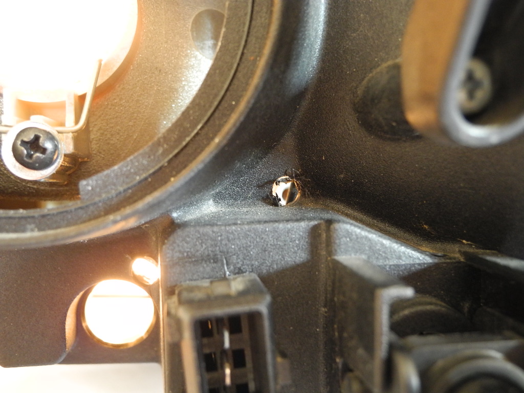 Dafür mußte ich allerdings auf der Rückseite des Scheinwerfers 2 Löcher (s. Fotos) bohren, um an die Schräubchen heranzukommen. Das "wieder dranschrauben" ist etwas fummelig, hilfreich ist eine lange Pinzette oder diese Zange mit den langen, spitz zulaufenden und abgewinkelten Schenkeln, evtl. auch eine 2. Person, die den Scheinw. einfach festhält. Die Löcher habe ich anschließend einfach mit Heißklebepistole zugekleistert, sieht man ja nicht.