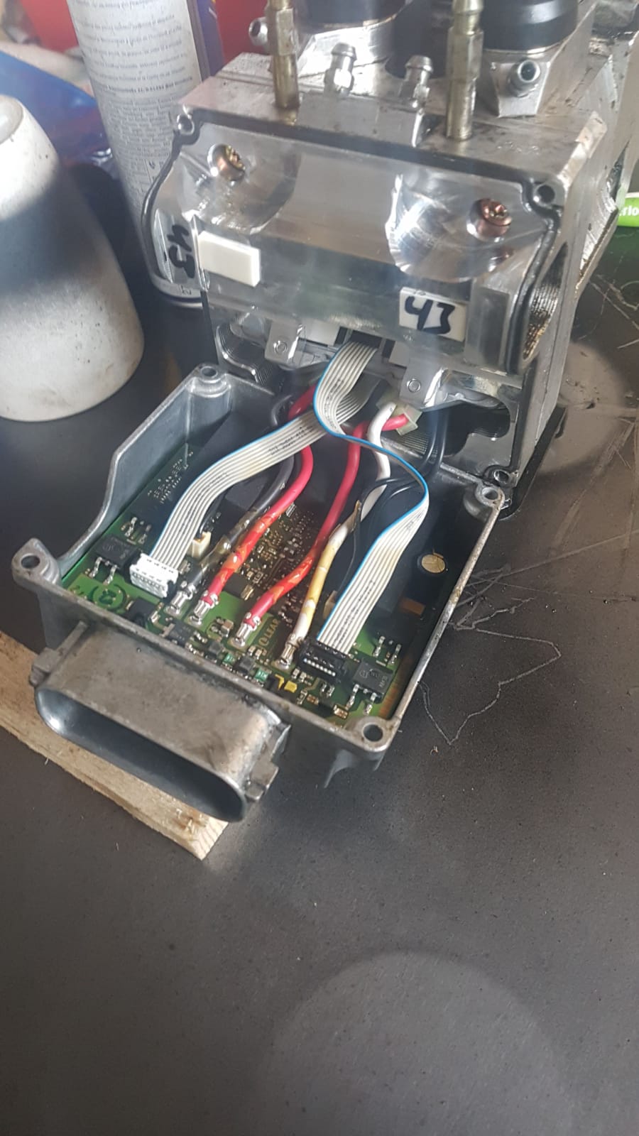 Oder eben einen günstigen BKV erwerben und die Steuerung tauschen. Bild von der offenen Steuerung mit den direkten Stromkabeln zu den beiden Motoren des BKVs hänge ich an.