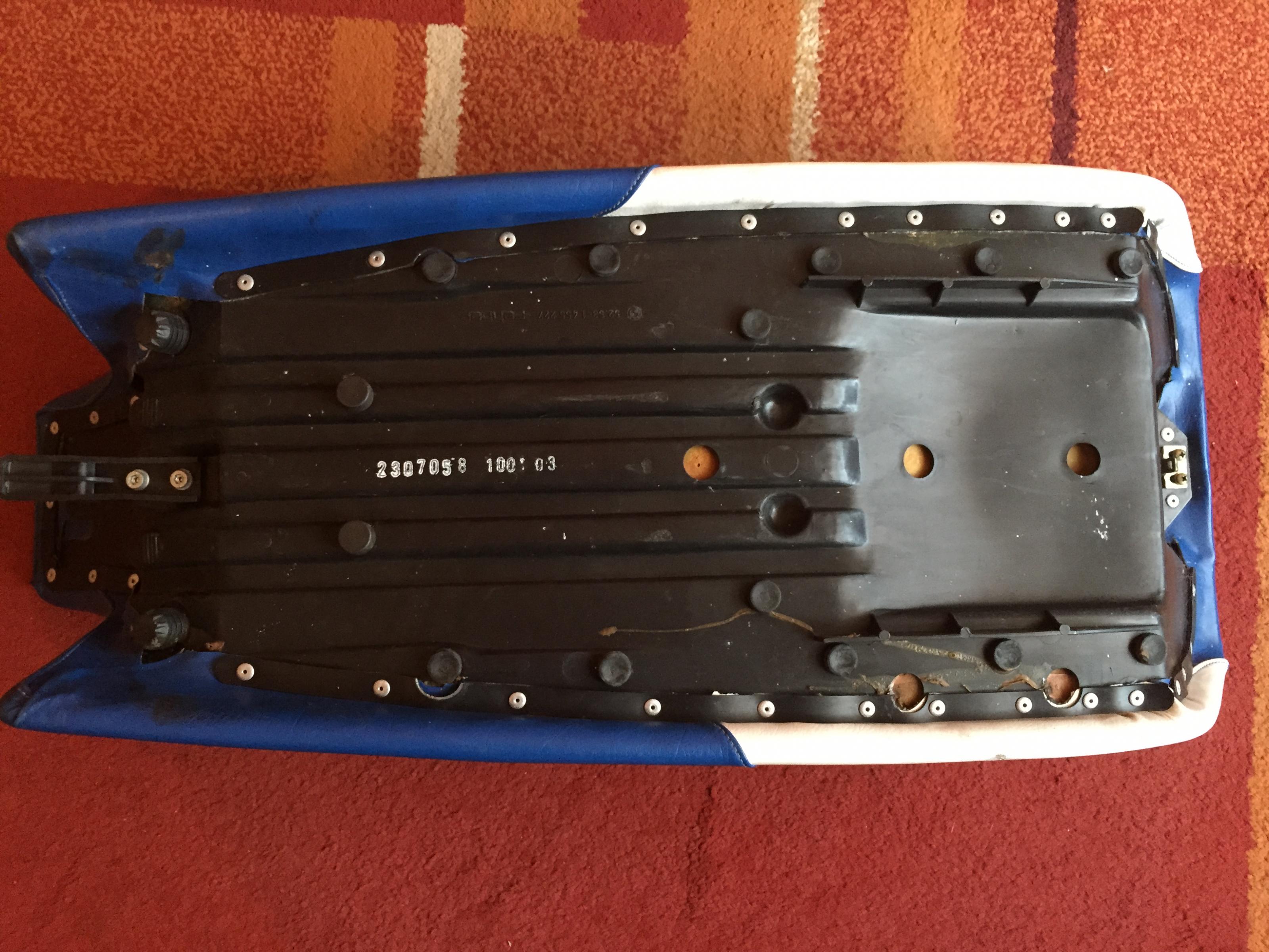 Blau- weiße Sitzbank für 100er GS: mit der Warscheinlichkeit eine solche Sitzbank zu finden, die noch gut in Schuß ist frage ich die Fan-Gemeinde.