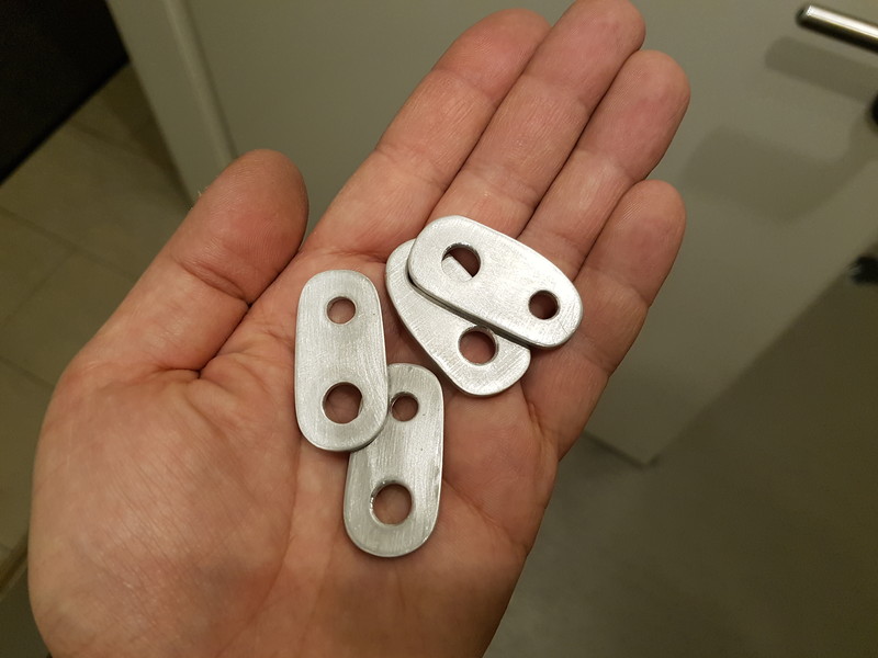 ich habe mir für meine 2005er GS die Rhombus Micro Blinker von Kellermann besorgt. Mir war klar, dass ich die nicht einfach so montieren kann, da die originalen Blinker ja mit dieser Doppelloch-Widerhakenkonstruktion montiert sind. Aber auf der suche nach Adapterplatten bin ich fast verzweifelt. Habe zwar nun welche aus Kunststoff gefunden, hätte aber dann doch gerne schwarze aus Alu, falls es sowas gibt. Mit den Adapterplatten wird das etwas zu große Loch auf M8 verkleinert und das hintere wird entweder abgedeckt oder bleibt offen und es kommt wieder eine Schraube rein.
