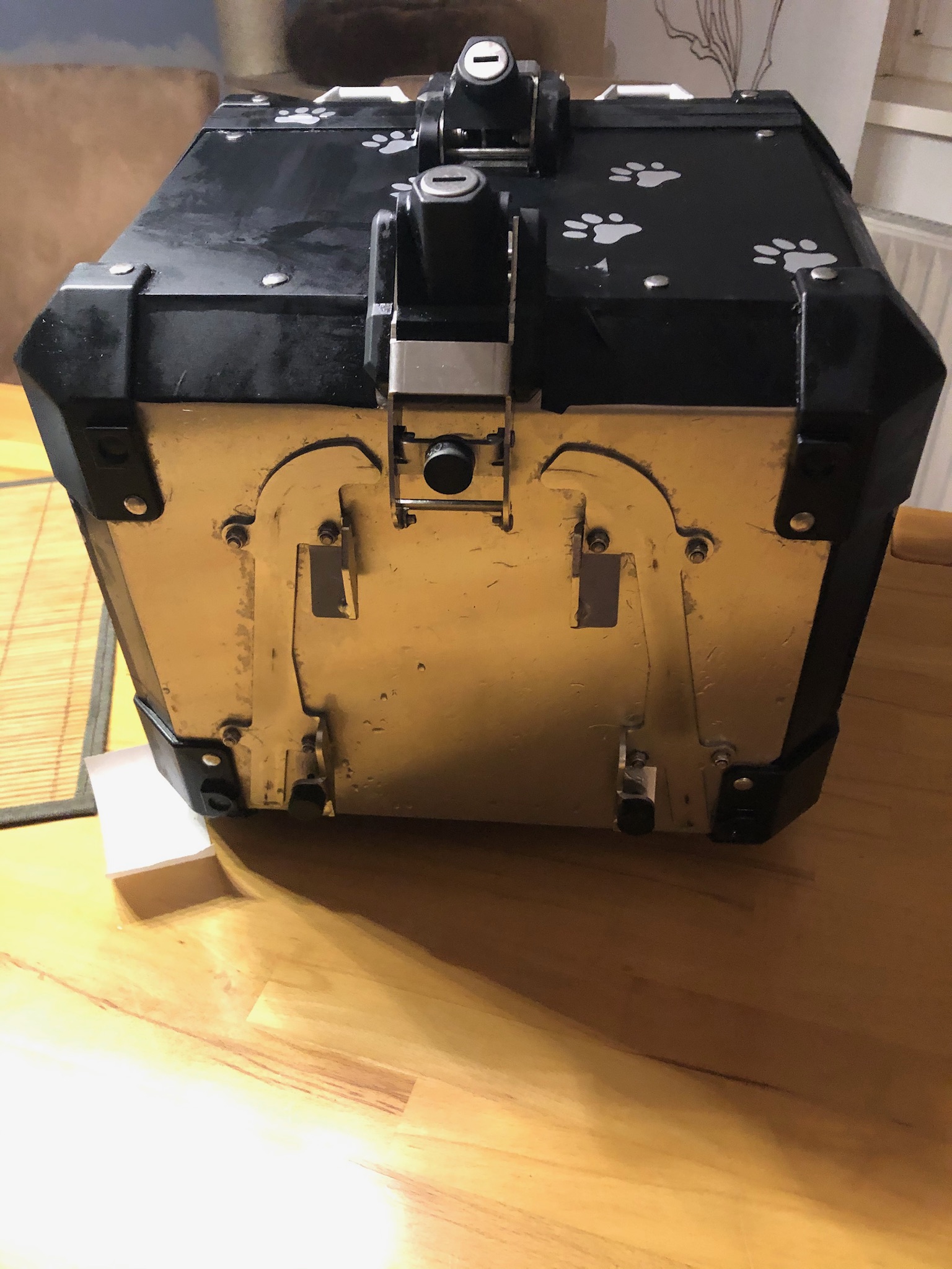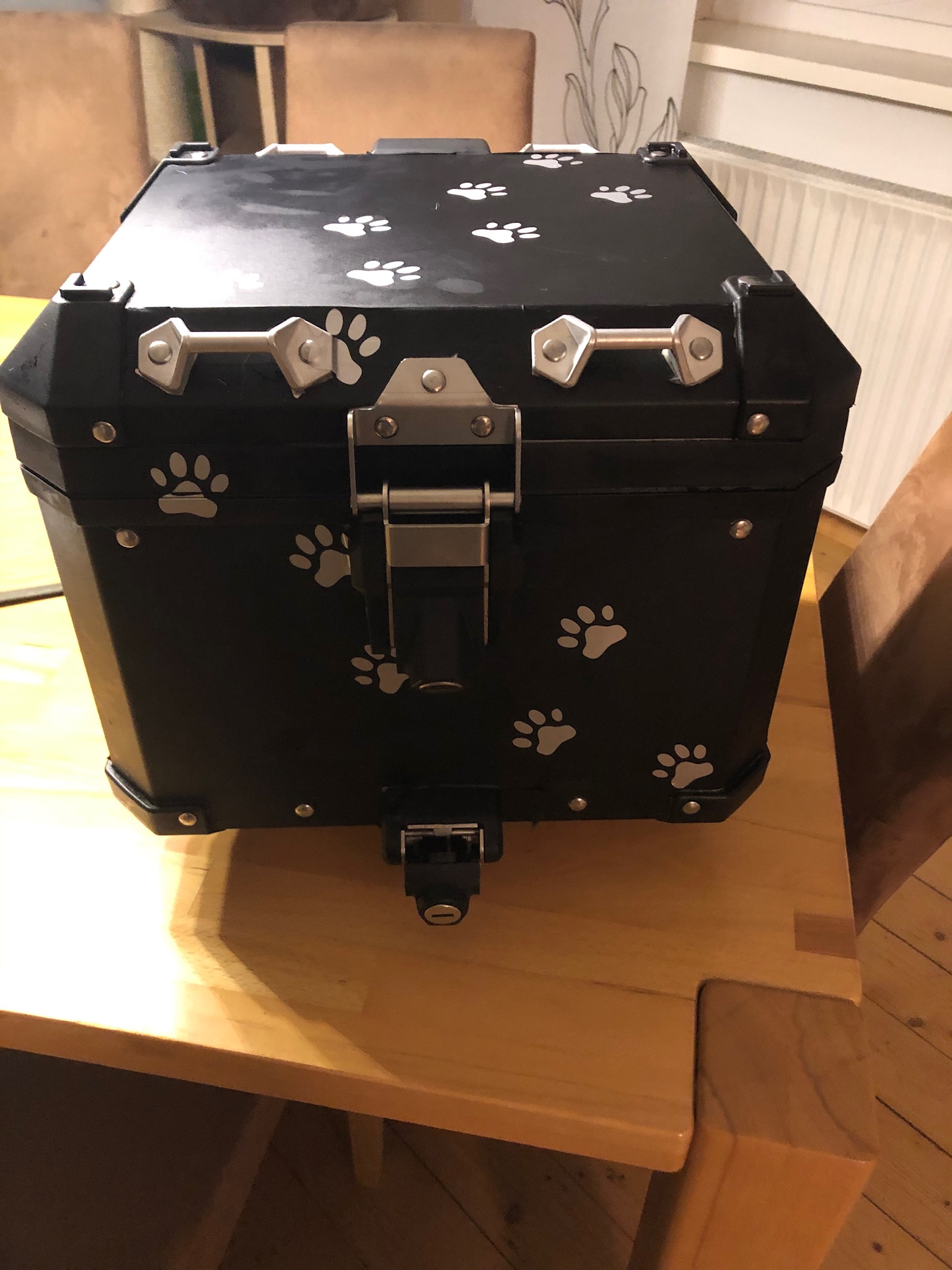 Das Topcase ist mit schwarzer Folie und Aufkleber versehen die sich rückstandslos entfernen lassen