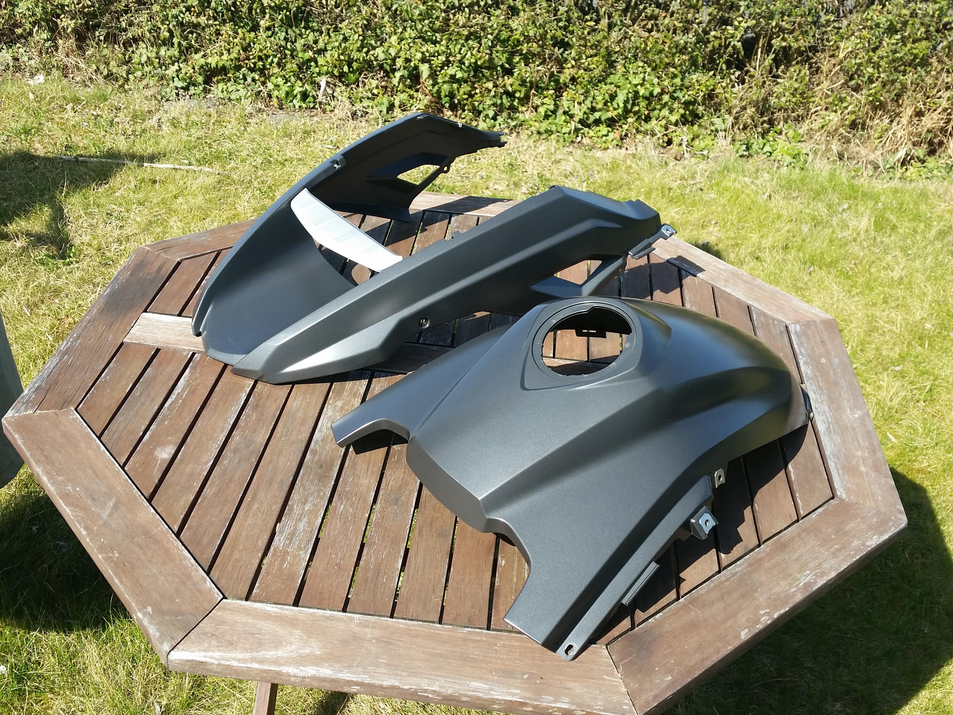 Wie auf den Bildern zu sehen, wird hier ein Schnabel- und ein Tankcover verkauft – somit fast der vollständige Lacksatz für eine BMW R 1200 GS K25 (BJ 2008 - 2012). Leider wurde ich beim Kauf meines aktuellen Lacksatzes "über den Tisch" gezogen, denn die beiden kleinen Seitenblenden unter der Tankverkleidung, die auch hier fehlen, um den Lacksatz zu komplettieren, waren nicht dabei