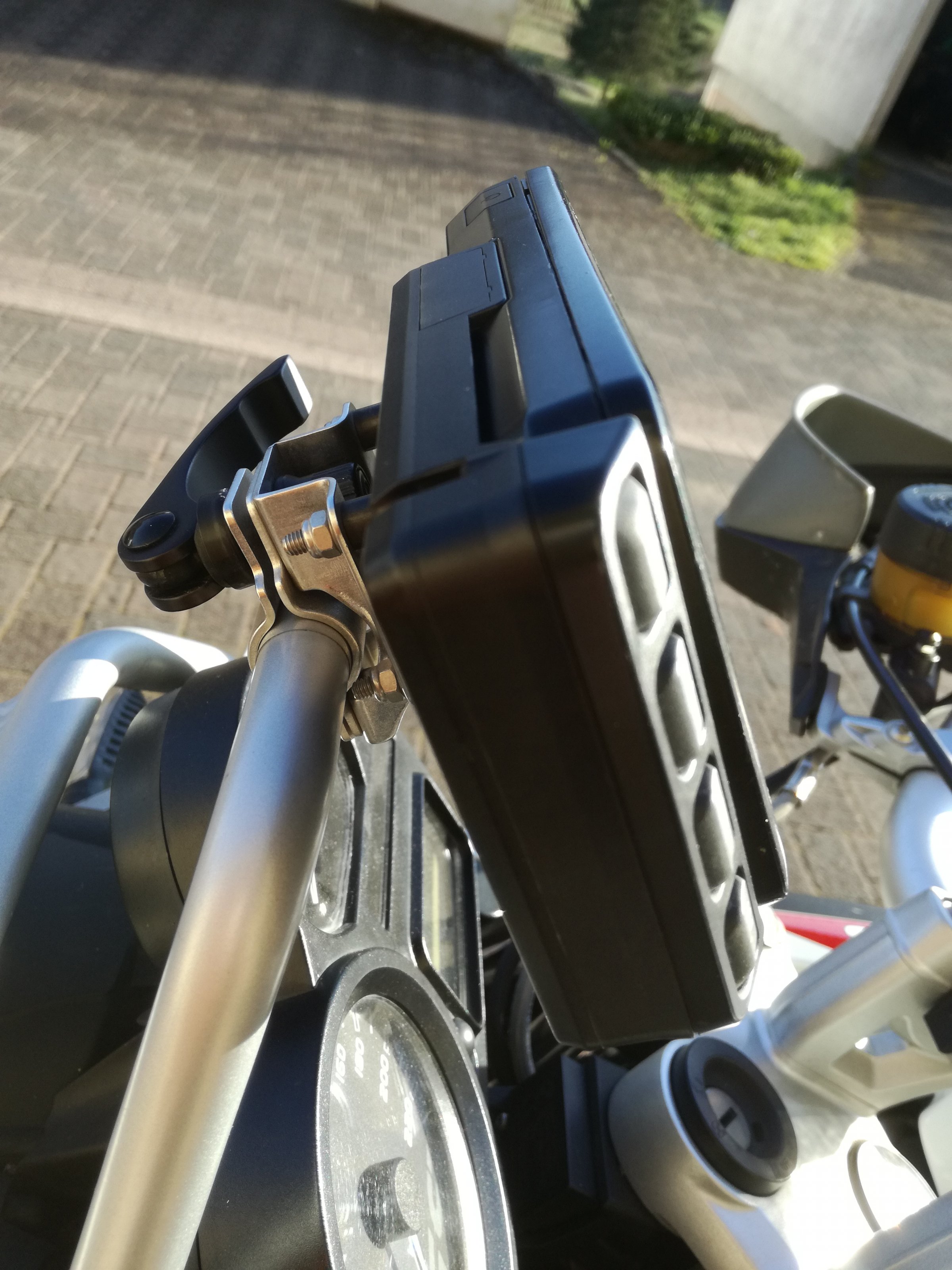 Ausserdem noch die Kfz Halterung dafür In gutem Zustand (siehe Bilder !) incl. Schrauben, Schutzhaube und Anschluß für die Stromversorgung an der BMW.
