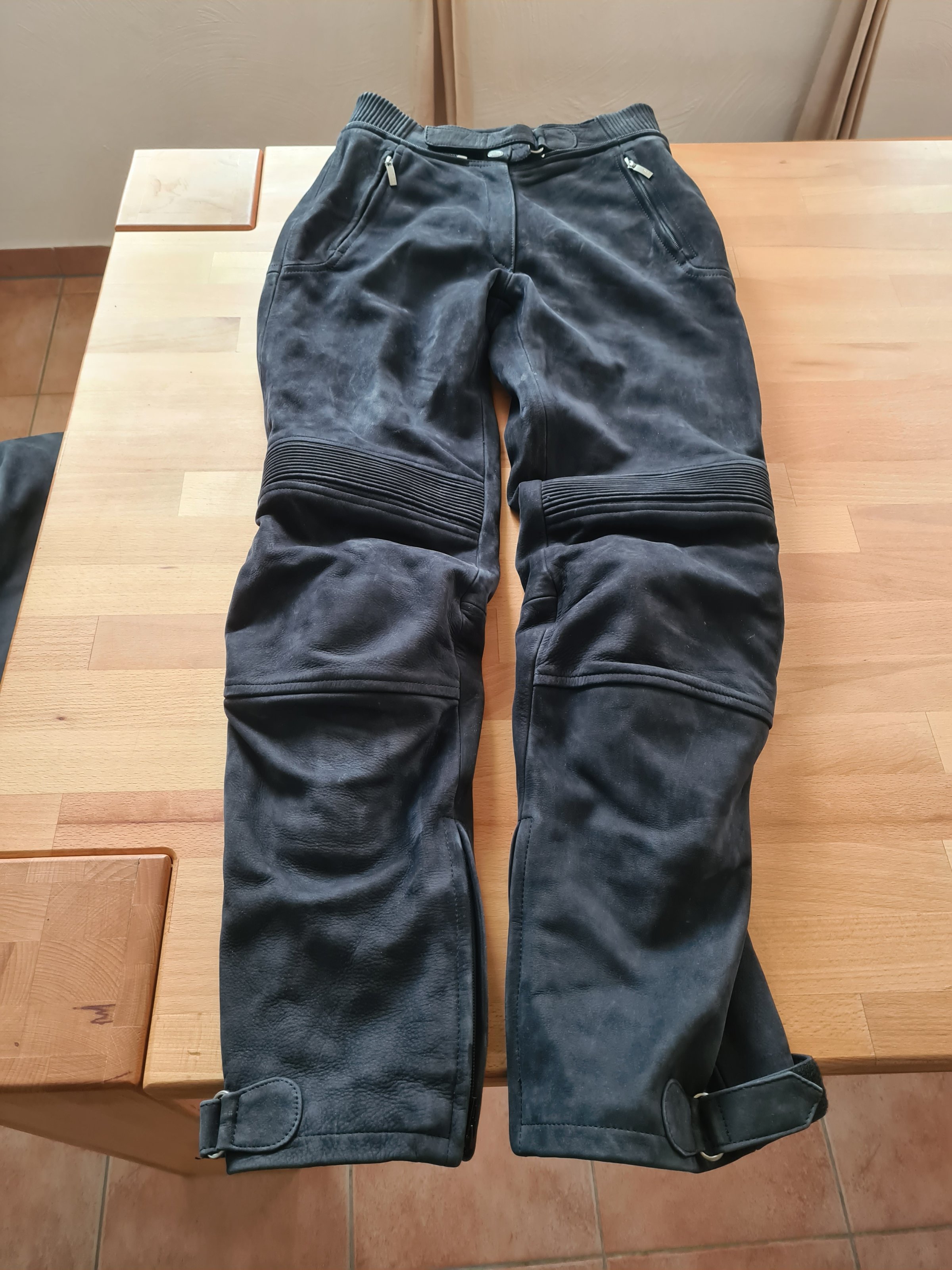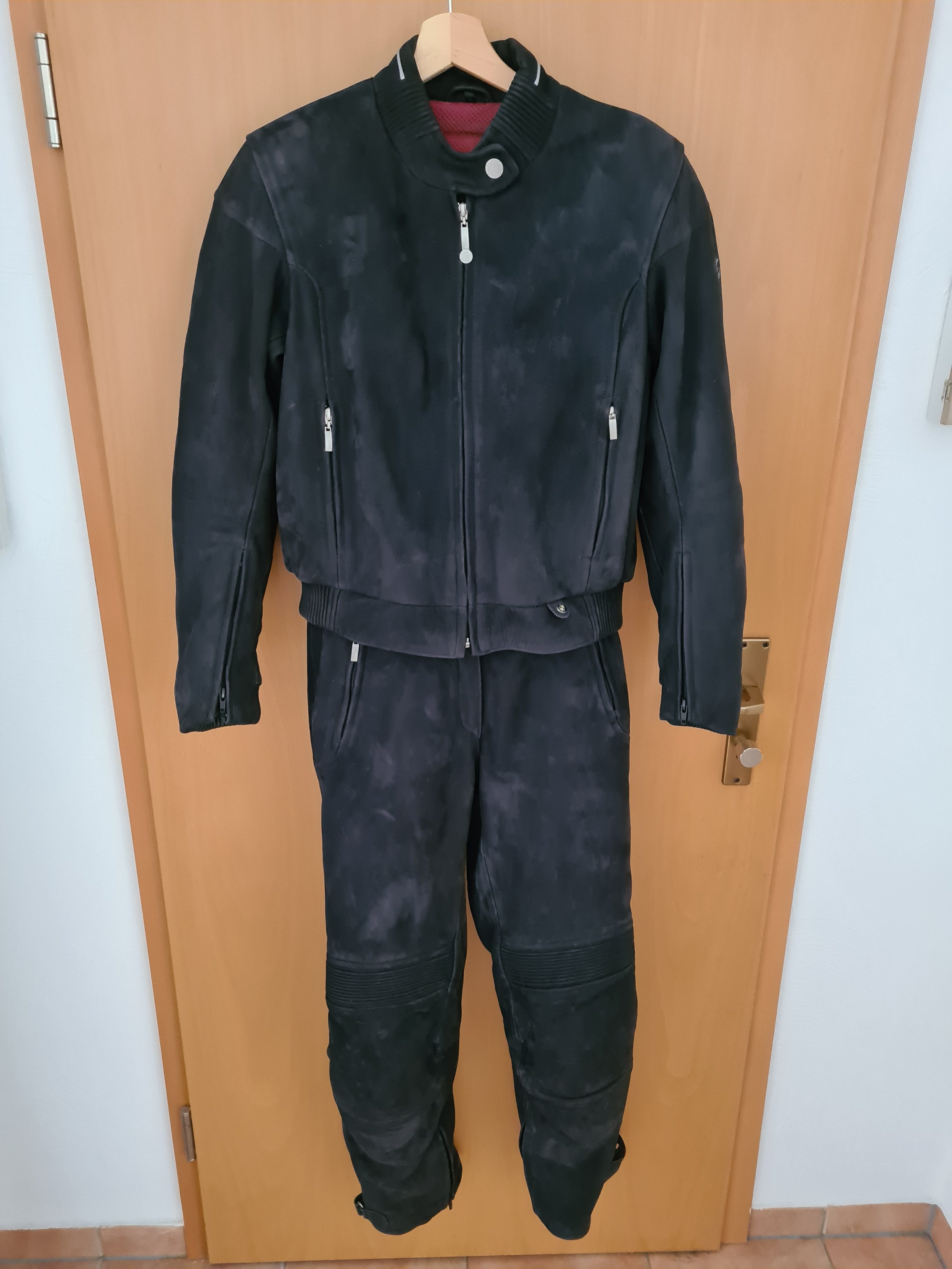 Verkaufe einen neuwertigen BMW Atlantis 2 Damen Motorrad Lederkombi. Die passenden BMW Lederhandschuhe lege ich mit dazu. Die Jacke ist Gr.40 fällt aber klein aus, die Jacke entspricht Größe 38. Die Hose ist Gr. 38 und fällt auch passend aus. Die Kombi wurde eigentlich nur gelagert im Schrank, weil die Besitzerin mit Mitte 50 zwar den Führerschein gemacht hat, aber nie gefahren ist. Die Kombi wird wie auf den Bilder abgebildet mit Protektoren verkauft.