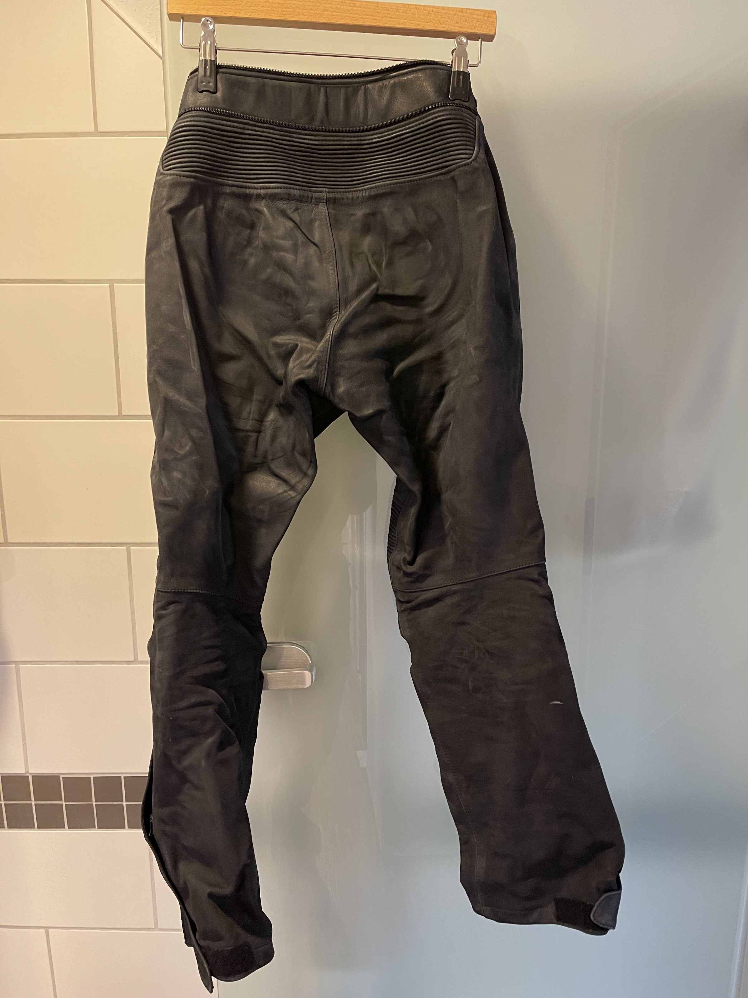 Die Kombi ist die letzten 5 Jahre trocken im Kleiderschrank gelegen. Die Protektoren passen sich bei Körperwärme an.