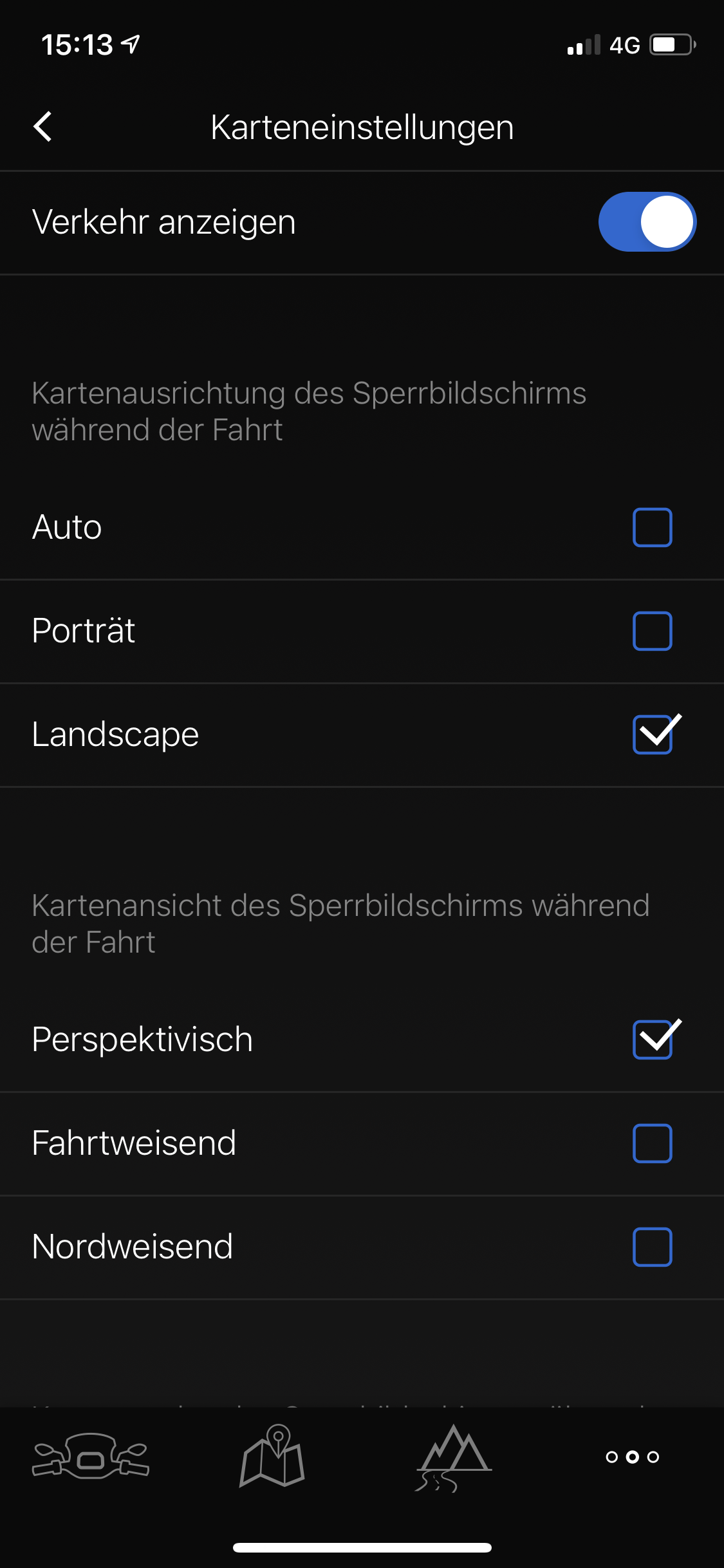 "Das Querformat wird nur während der Fahrt unterstützt, wenn du unter Karteneinstellungen die "Kartenausrichtung während der Fahrt" auf " Auto" und auf deinem Handy das automatische Drehen aktiviert hast."