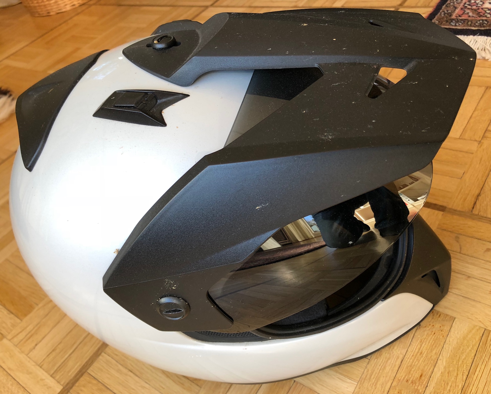 Verkaufe meinen BMW Enduro Helm, wenig getragen, normale Gebrauchsspuren, dunkles Visier, Visier und Mechanik...