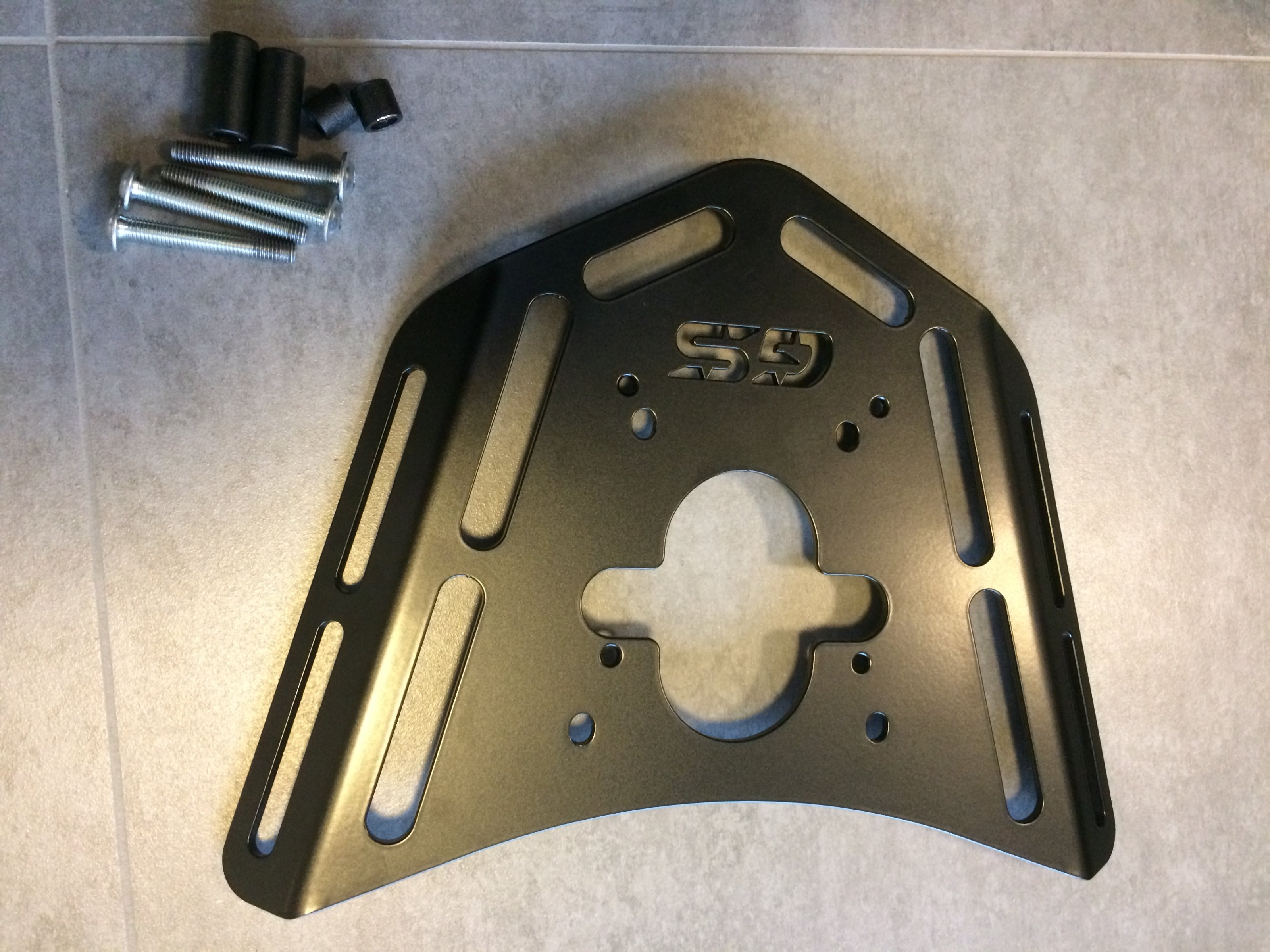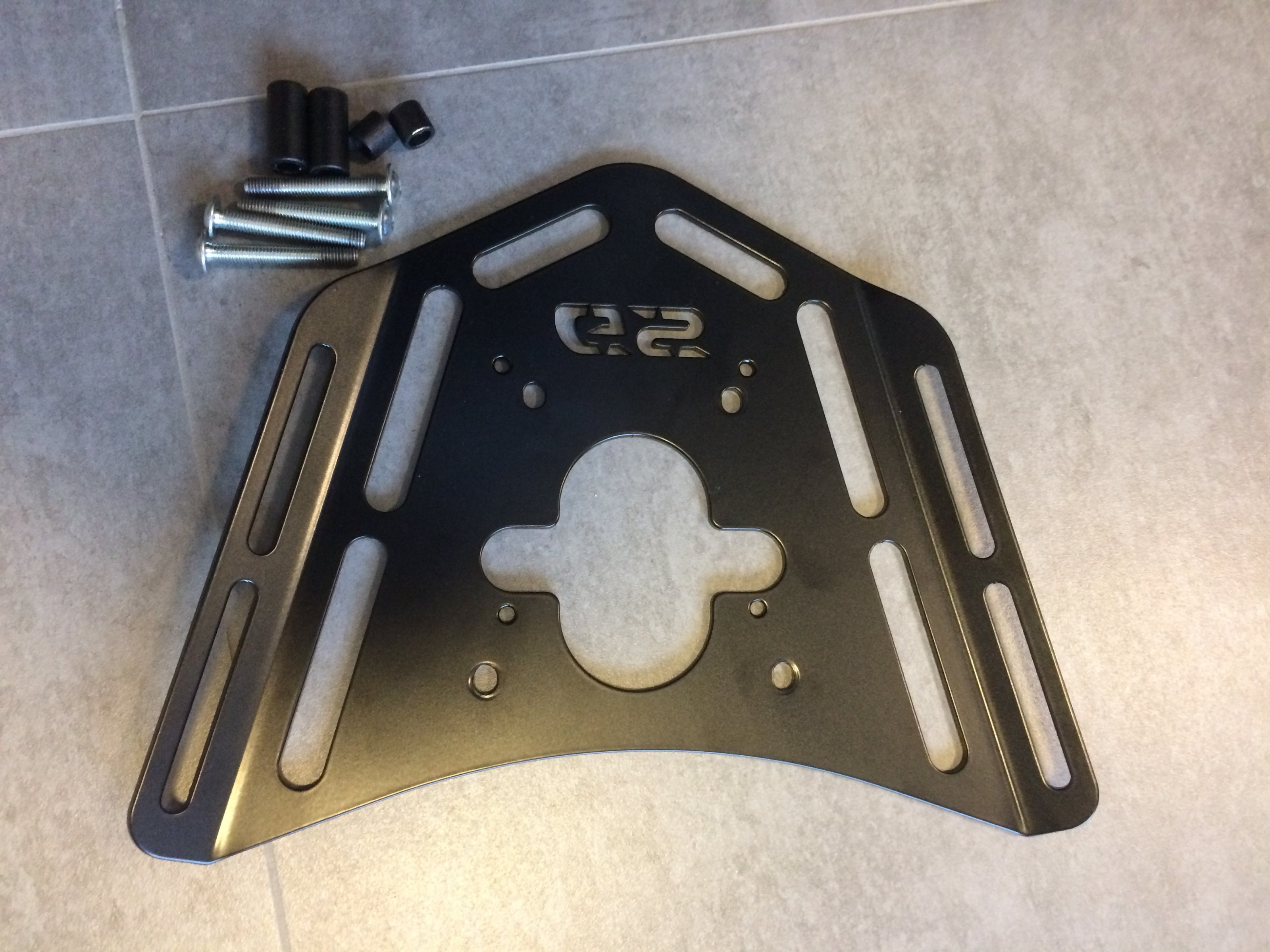 Die Gepäckträgerplatte ist schwarz gepulvert und nur kurz im Einsatz gewesen (Fahrzeugwechsel).