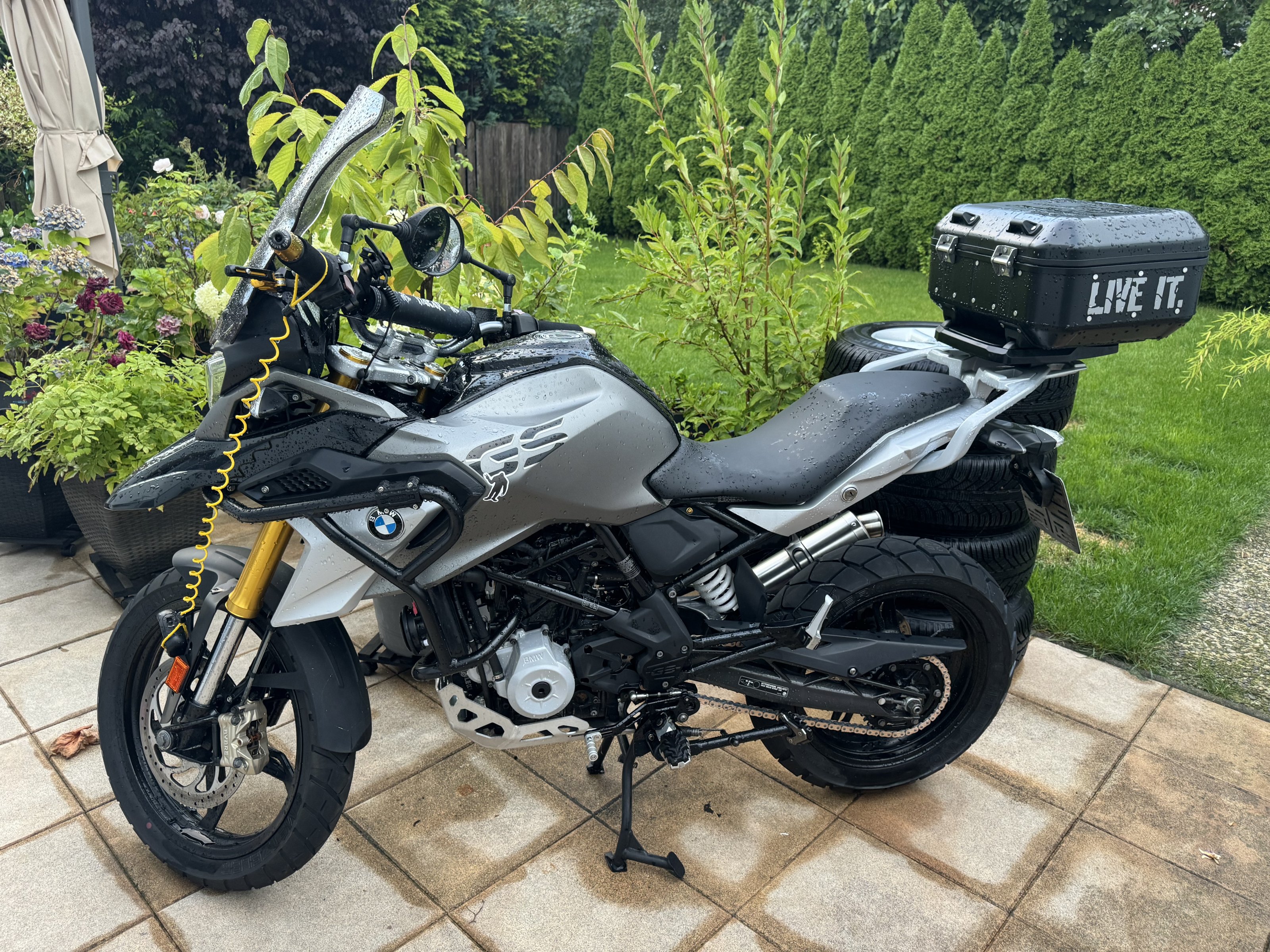 Hier kommt eine BMW G310 GS (A2, 25 Kw/34 PS) mit reichhaltiger Sonderausstattung und vielen Neuteilen für 3.499,- VB ins Angebot.