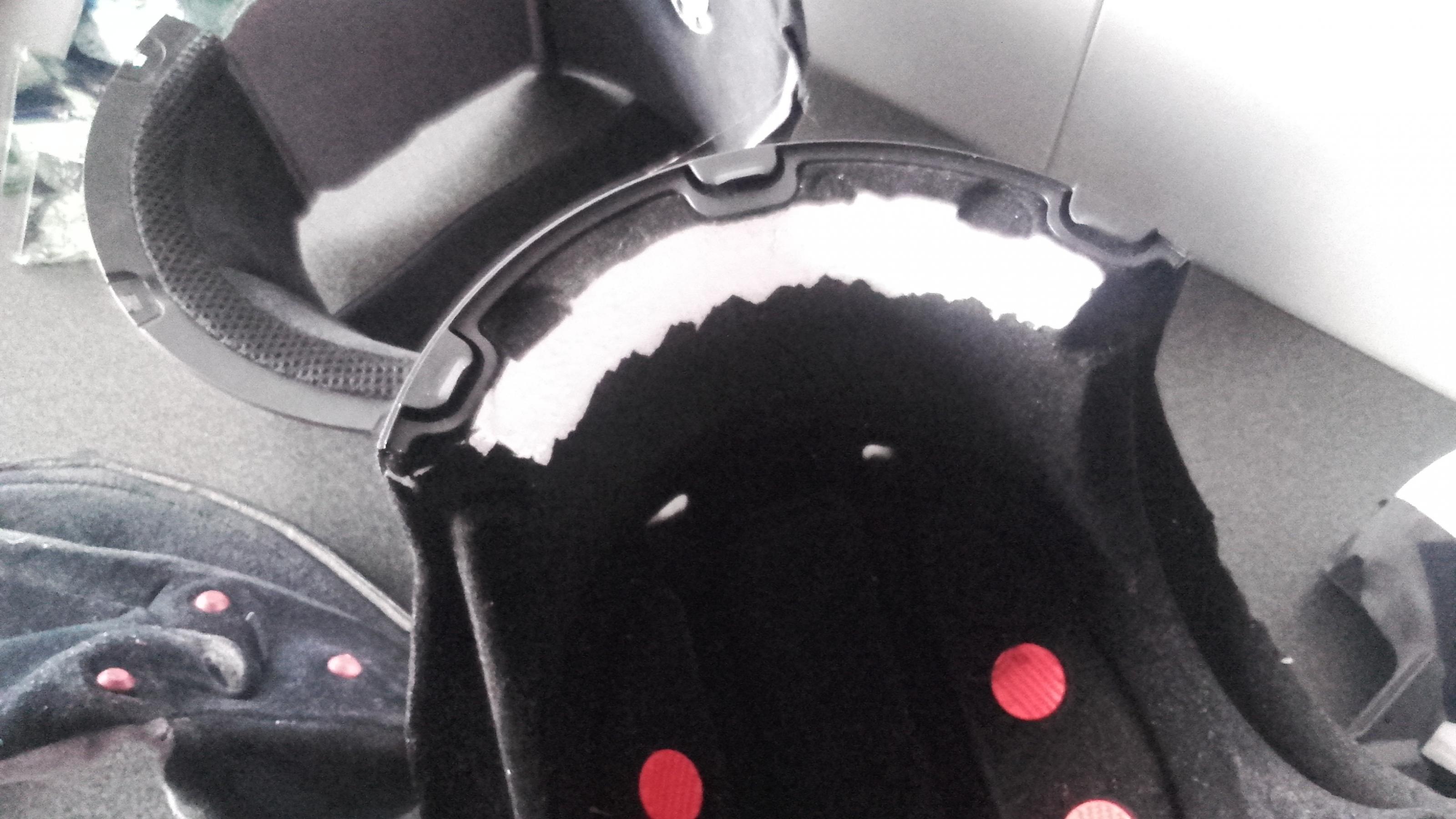 Hab auf ner Messe diesen Helm gekauft ist nach 2maligem tragen doch zu klein,hab an der Schale einwenig weggeholt (sieh Foto) aber sitzt immer noch nicht gut....Jetzt ist auch noch das Kabel von der Sonnenblende geknickt ,darum hab ich jetzt doch beschlossen einen anderen zu kaufen.