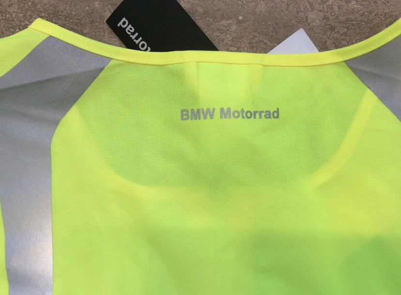 Biete eine BMW Warnweste in neongelb für bessere Sichtbarkeit.
