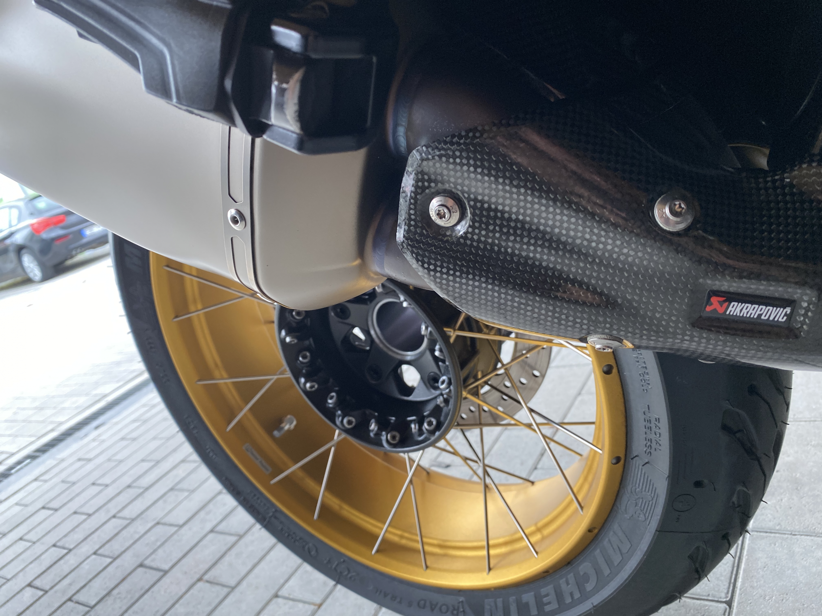 - Seitenfläche mit gelaserten Akrapovič- und HP-Schriftzug versehen