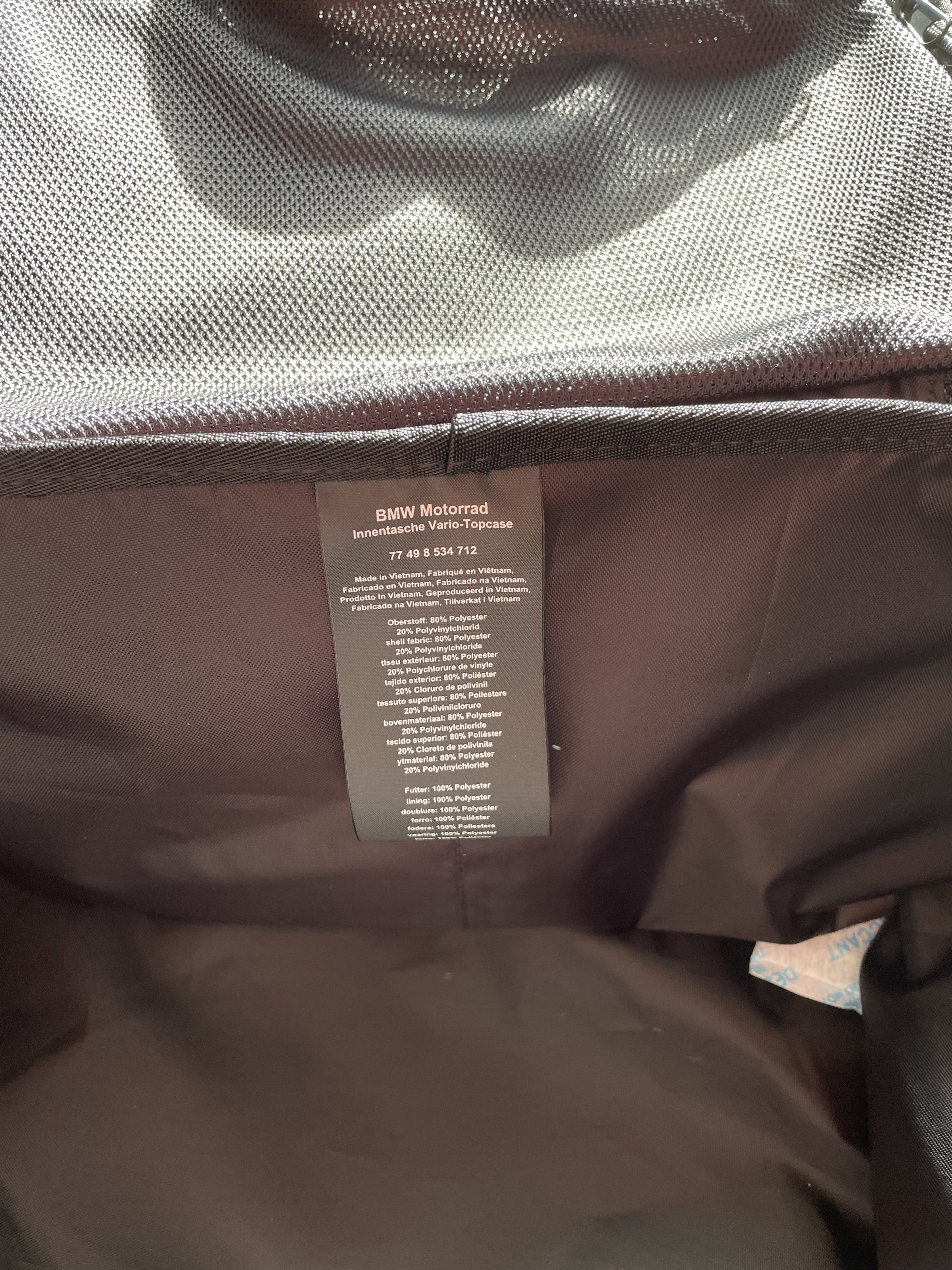 verkaufe eine unbenutzte Innentaschen für ein Vario-Topcase -K50 K51 K80 K81( Neuzustand).