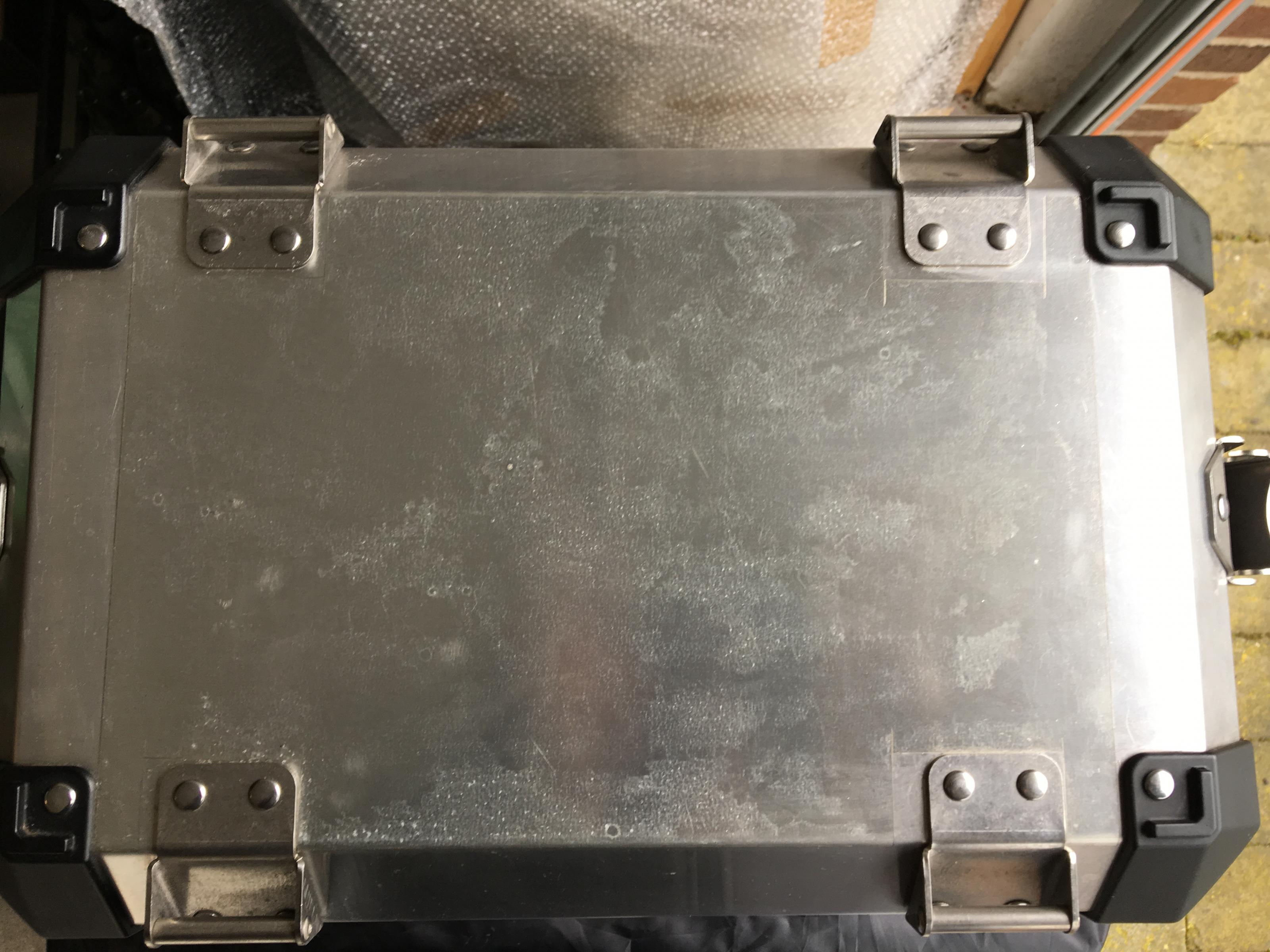der koffer links, hat vorne eine kleine macke.
