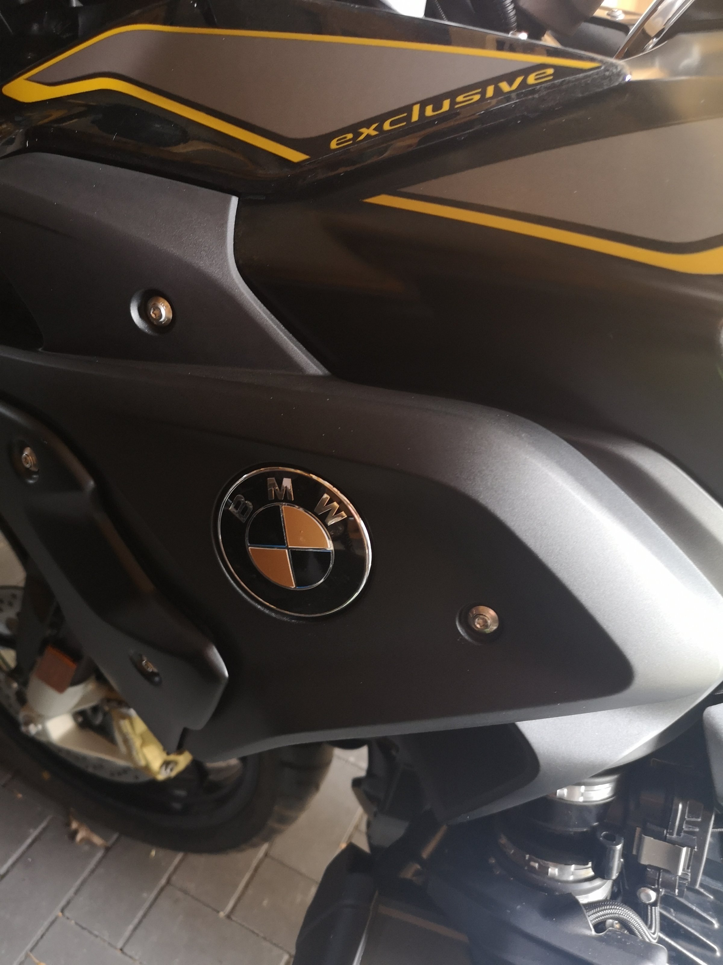 Am Lenker stört mich das weiß-blaue Logo nicht, ich möchte die beiden Embleme an der seitlichen Verkleidung aufhübschen.