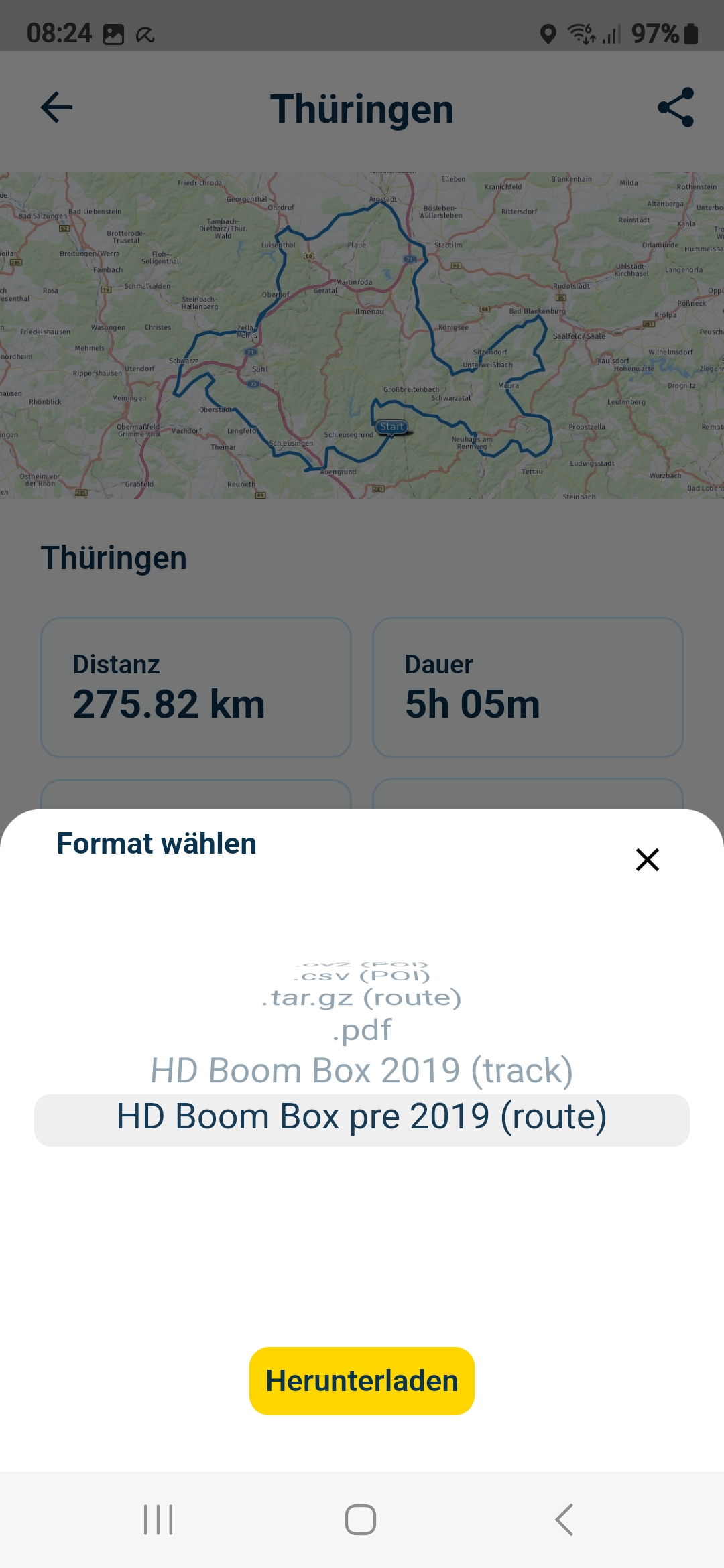 Wie bereits erwähnt nutze ich zur Routenplanung das Tool MyRoute App am PC, fürs Smartphone gibt es dazu eine eigene App.