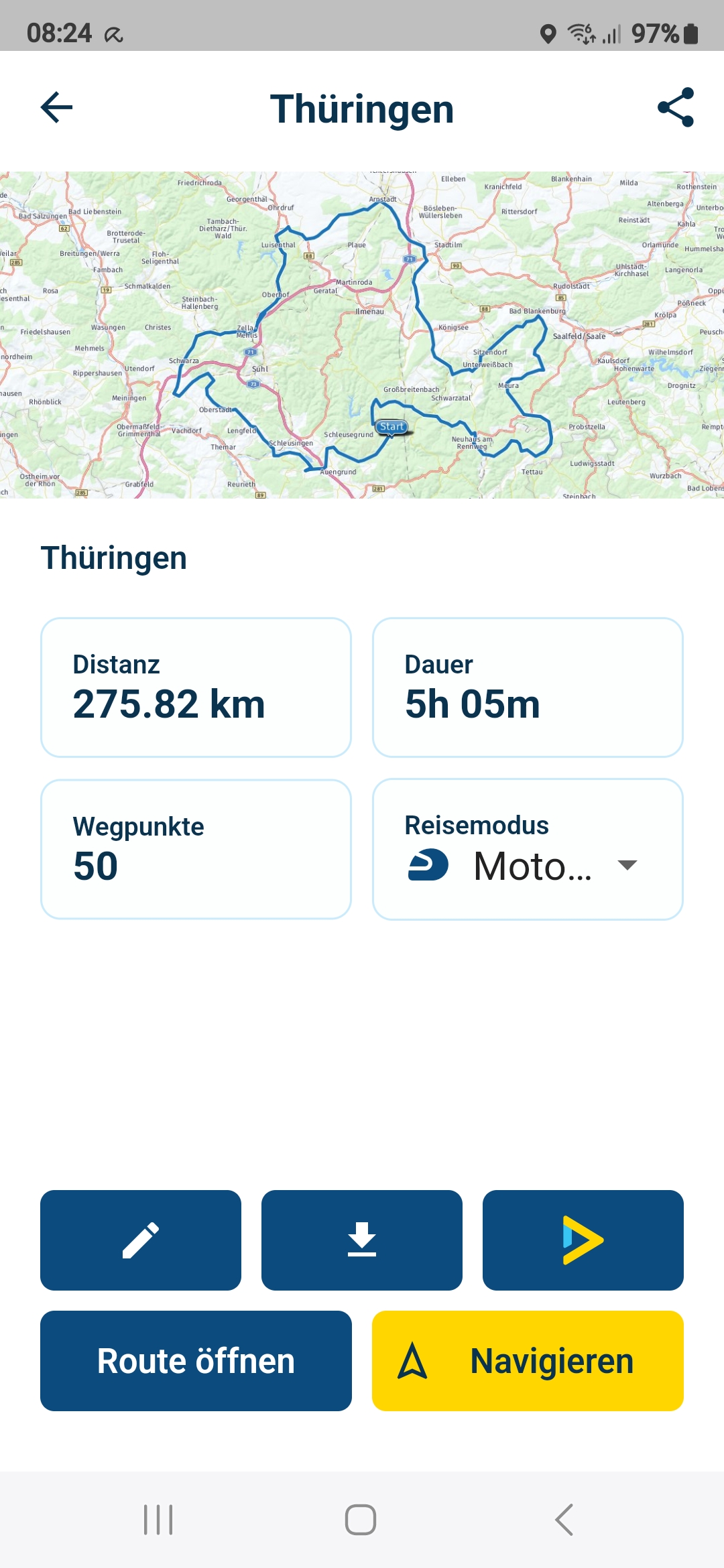 Das ändert aber nichts am grundsätzlichen Vorgehen. Auch eine in der App geplante Route wird bei jedem Start neu berechnet.