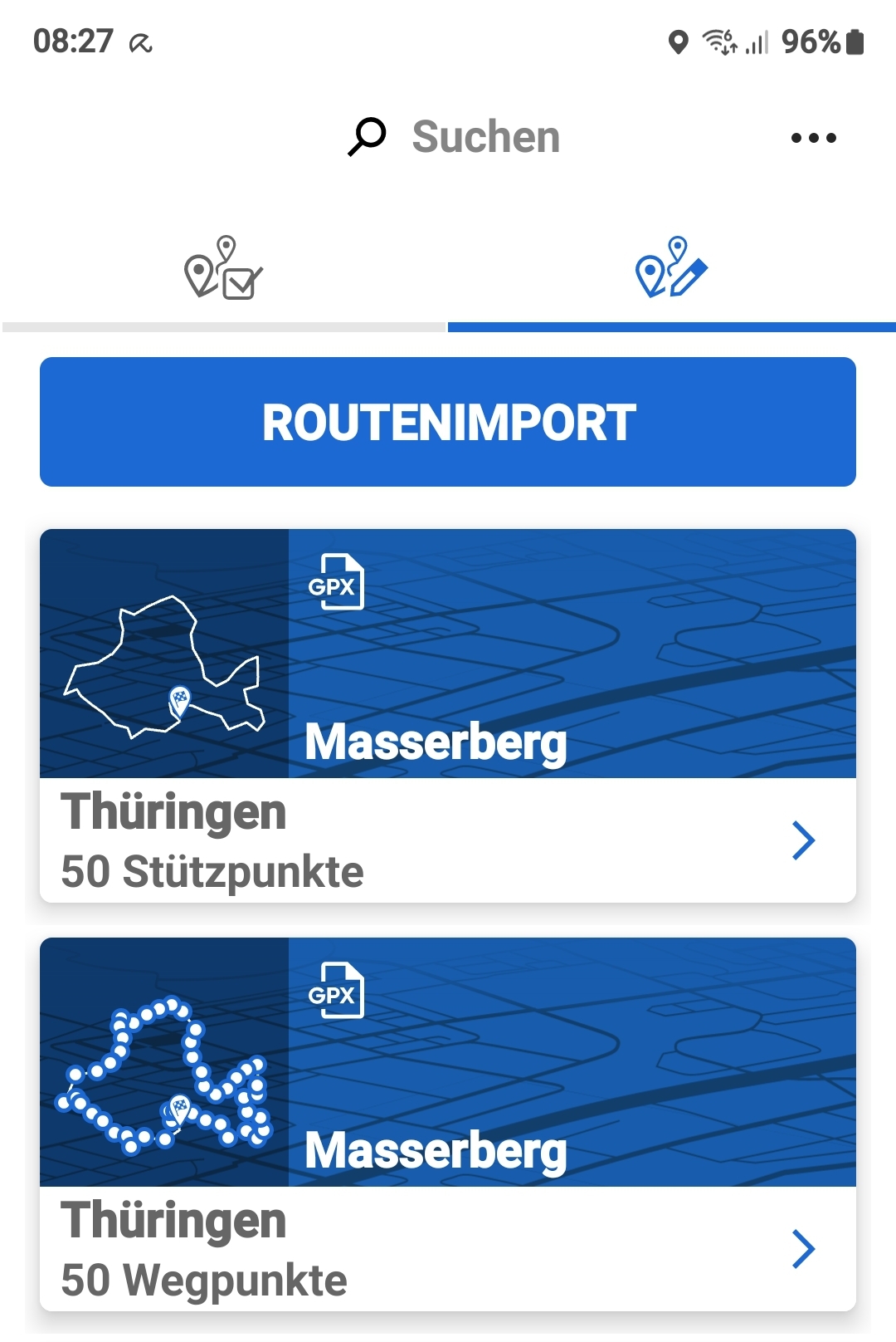 Es bliebe zwar noch die Möglichkeit, Routen direkt in der MCA zu planen, aber das ist -vorsichtig gesagt- mühselig auf so einem kleinen Bildschirm (Handy) und außerdem limitiert durch die 50 Wegepunkte.