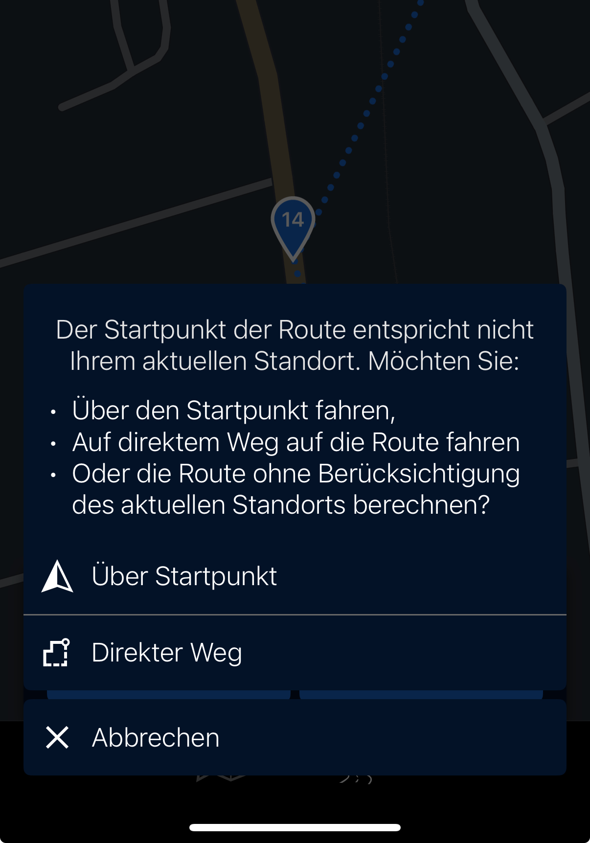 Ist es nicht. Über Startpunkt ist wie du sagst. Ab Startpunkt heisst, er rechnet die Route so wie sie ist, ohne den aktuellen Standort zu berücksichtigen. Das geht aber nur in der App, der CRN macht es anders,Ab startpunkt Oder über Startpunkt ist doch das gleiche.