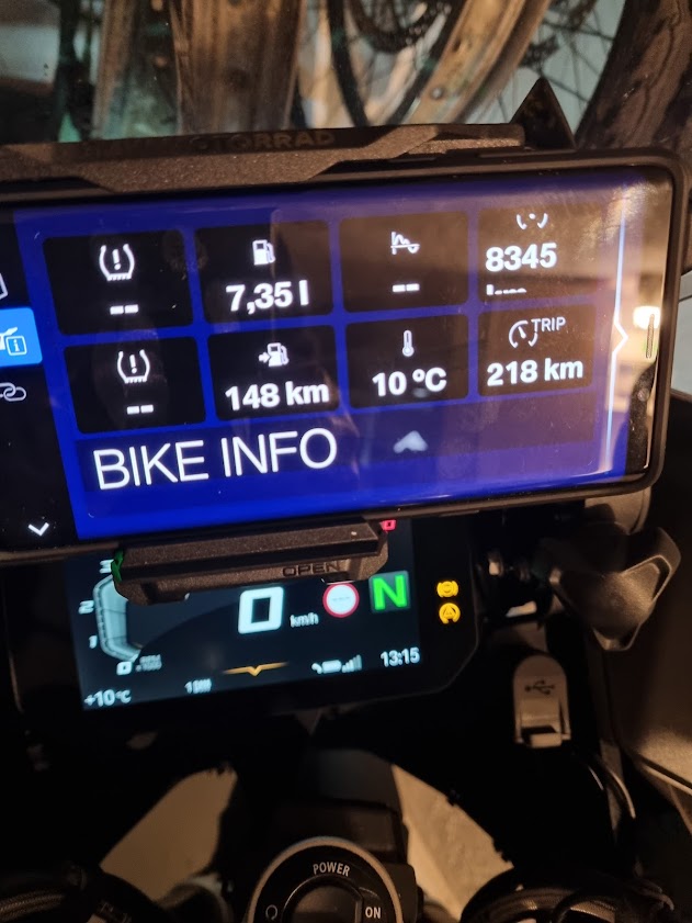 Es ändert aber nichts daran, dass ausschliesslich mittels Cradle eine echte Integration ins Fahrzeug erreicht wird. Zudem liest das Cradle auch reichlich Parameter aus und zeigt sie in der App an. Die aktuelle Schräglage z.B. kannst Du dir auf der GS nicht während der Fahrt ansehen.
