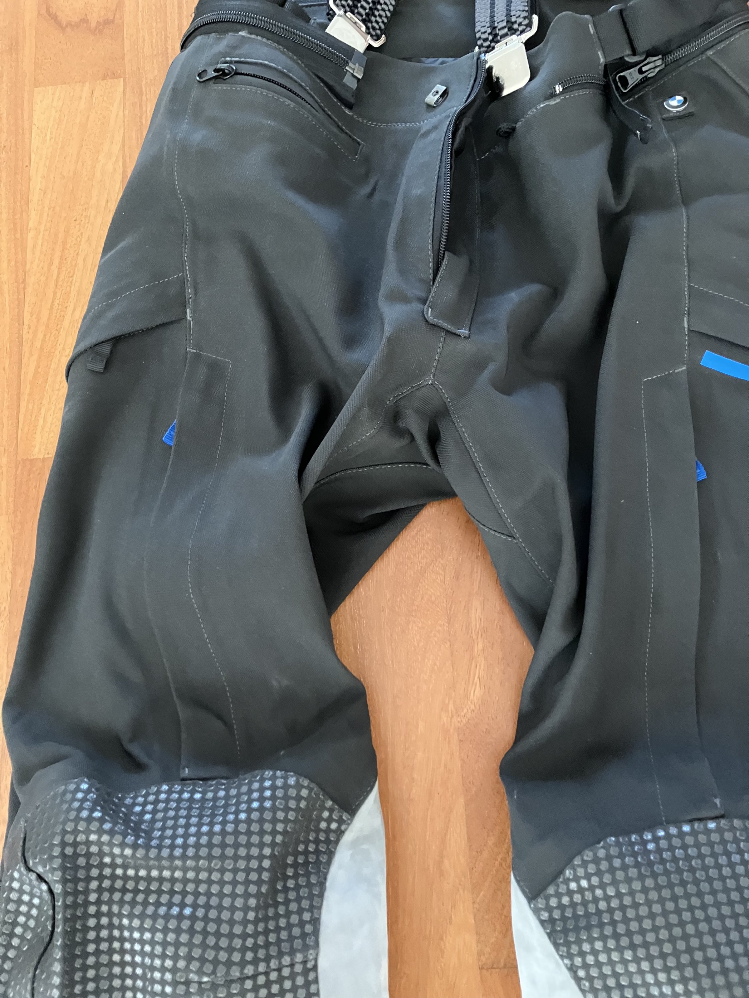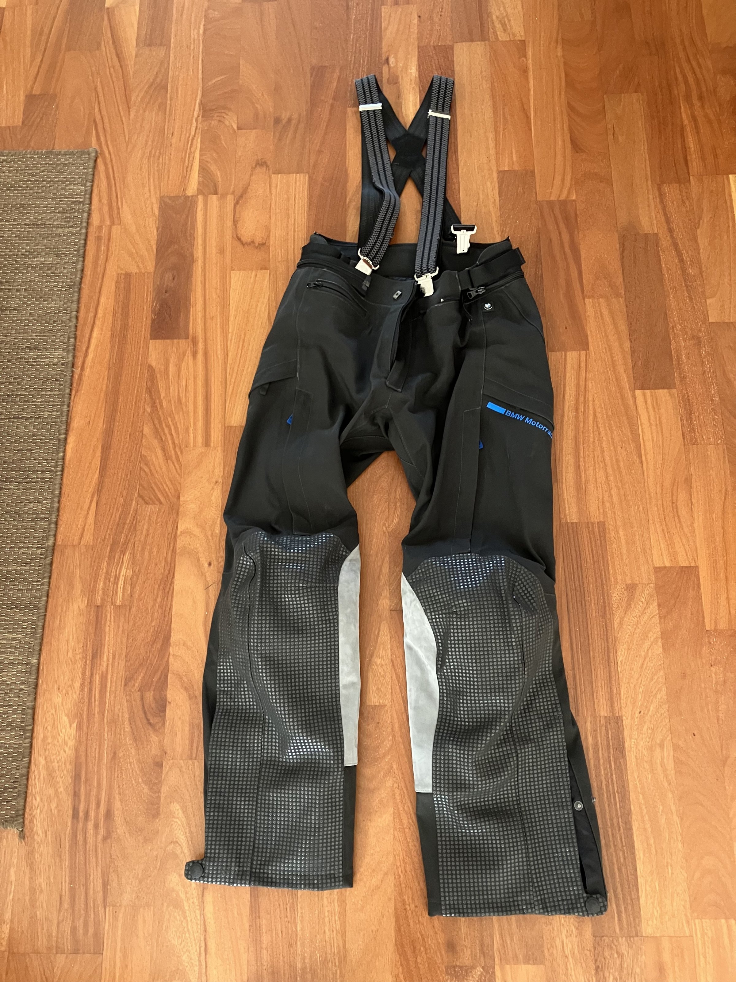 Details Hose: Knie - Protektoren, Hüft - Protektoren, 3 Außentaschen, 4 Belüftungs - Reißverschlüsse, Lederbesatz Kniebereich, verstellbare Wadenweite, Gore-Tex = wasserdicht/wasserabweisend. Ohne jegliche Gebrauchsspuren. Damaliger Listenpreis BMW: 590 Euro