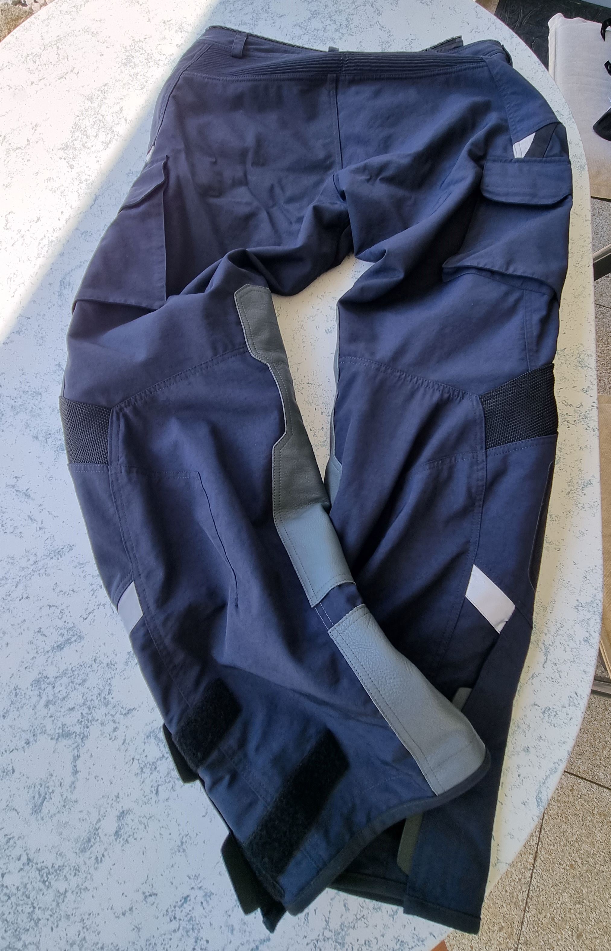 Wie auf den Bildern zu sehen ist sie in der Farbe dunkelblau. Das herausnehmbare, wasserdichte Inlay wurde nie benutzt und ist selbstverständlich dabei. Ohne das Inlay ist diese Hose, wie auch die Jacke, ein perfekter Anzug für warme Sommertouren. Mit Inlay passt die Hose für jedes Wetter.