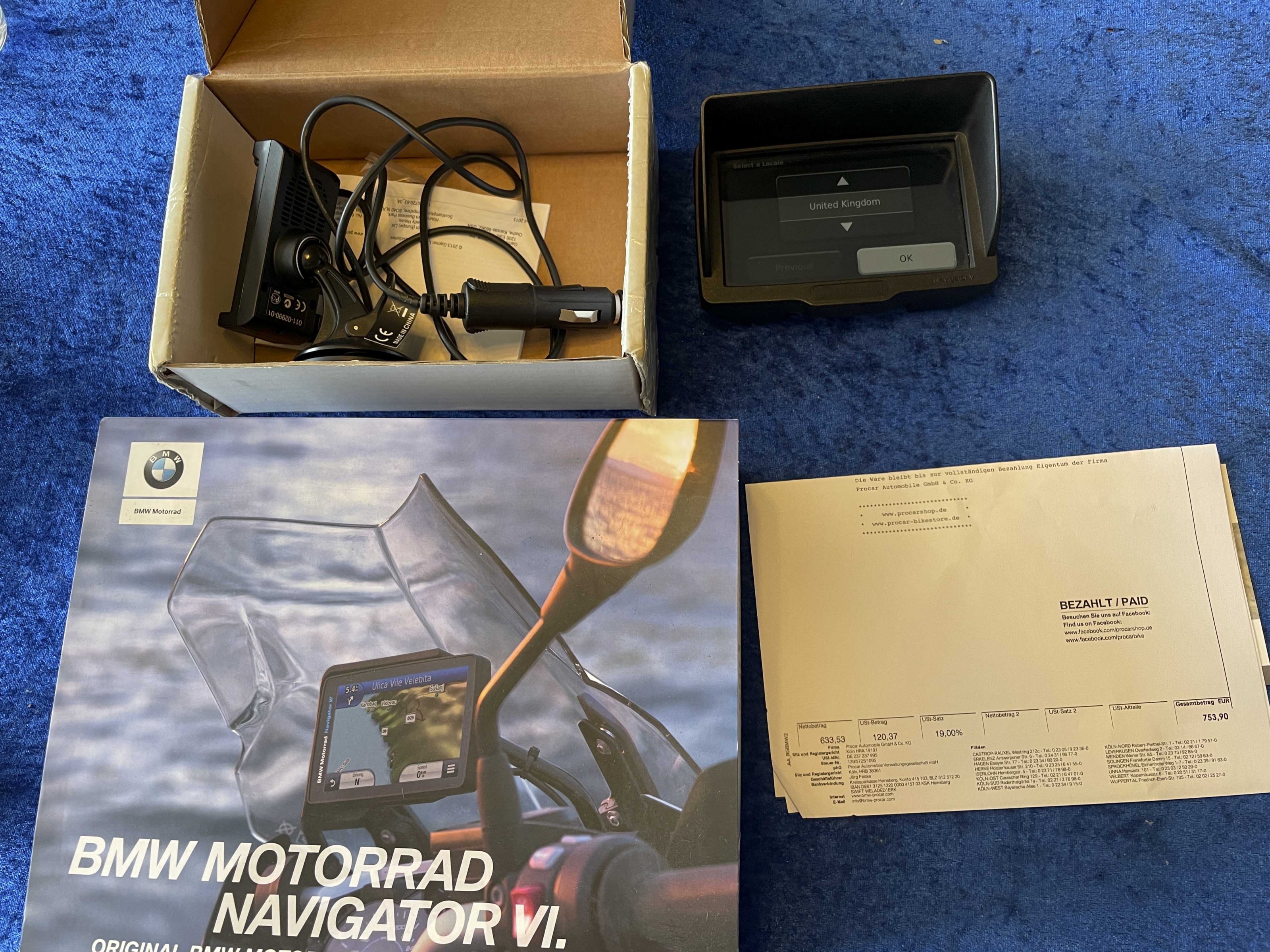 Daneben ist auch die Original-Autohalterung dabei ebenso wie die Sonnenabdeckung von Wunderlich (für den Navigator V, baugleich!).Das Case ist nicht dabei, ich habe es in der Garage nicht gefunden.