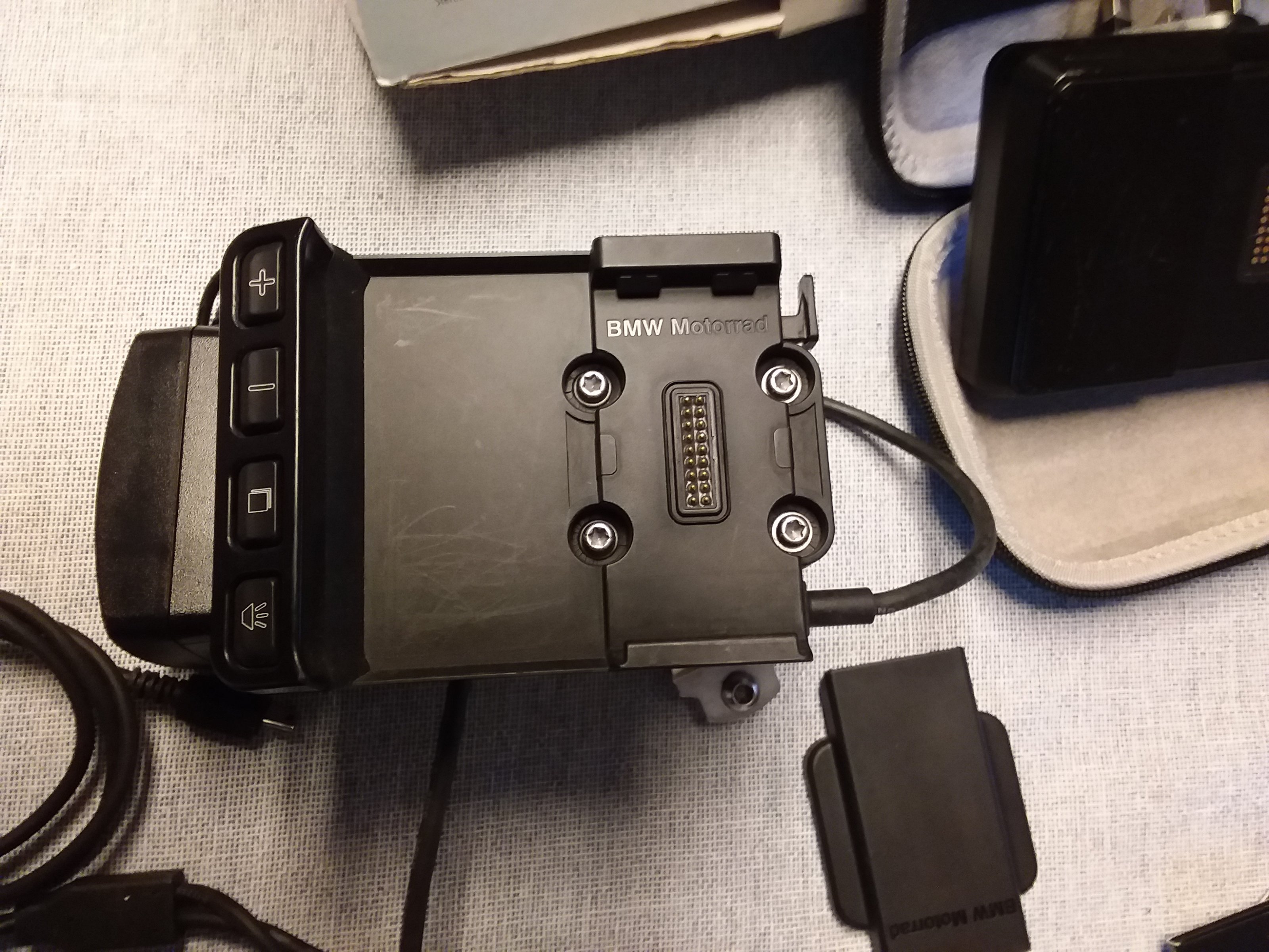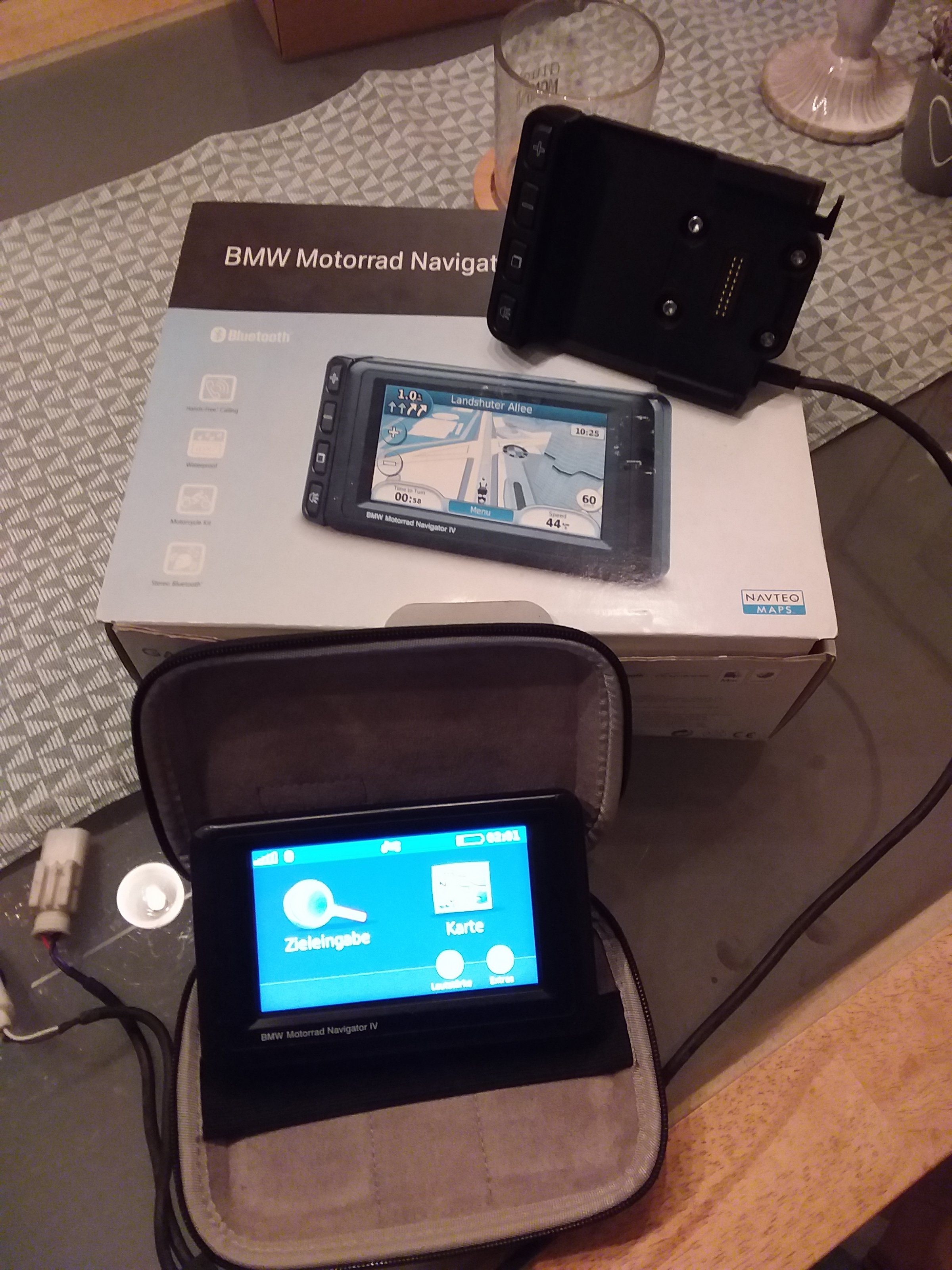 ich möchte auf diesem Wege einen original BMW Navigator IV incl. Ladehalterung und Befestigungshalterung zum Kauf anbieten. Das Navi samt Halterung passt für alle gängigen BMW Motorräder (BMW F650, F700, F800, F900, R1100, R1150, R1200, R1250, R1300 etc.) und ist mit den passenden Anschluß Kabeln und Steckern für diese Modelle ausgestattet. Das Navi wird komplett mit Tasche, Handbüchern, Software, Lizenzschlüssel, Ladegerät für 220V, etc. wie auf den Bildern anbei zu sehen geliefert. Es ist voll funktionsfähig, hat keine Macken, Kratzer oder ähnliches, da ich es kaum auf meiner R1200GS genutzt habe. Hier komplett für 100€ zu haben.