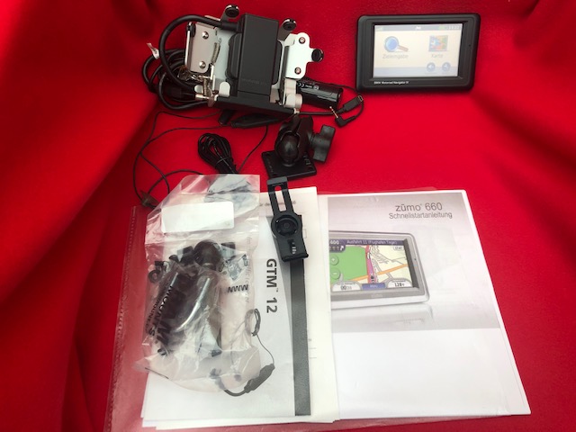 inkl. Verkehrsfunk-Empfänger, Kabel, Befestigungsmaterial ,Garmin Tourenkarten und Bedienungsanleitung.
